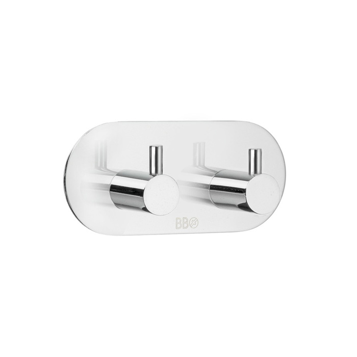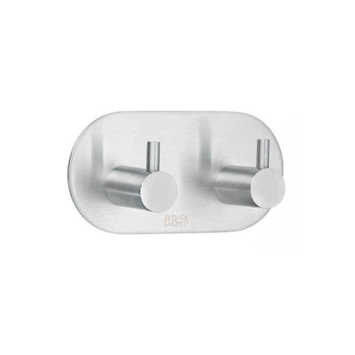 Handdukskrok Beslagsboden 1102 är en dubbelkrok som enkelt monteras eftersom den är självhäftande.