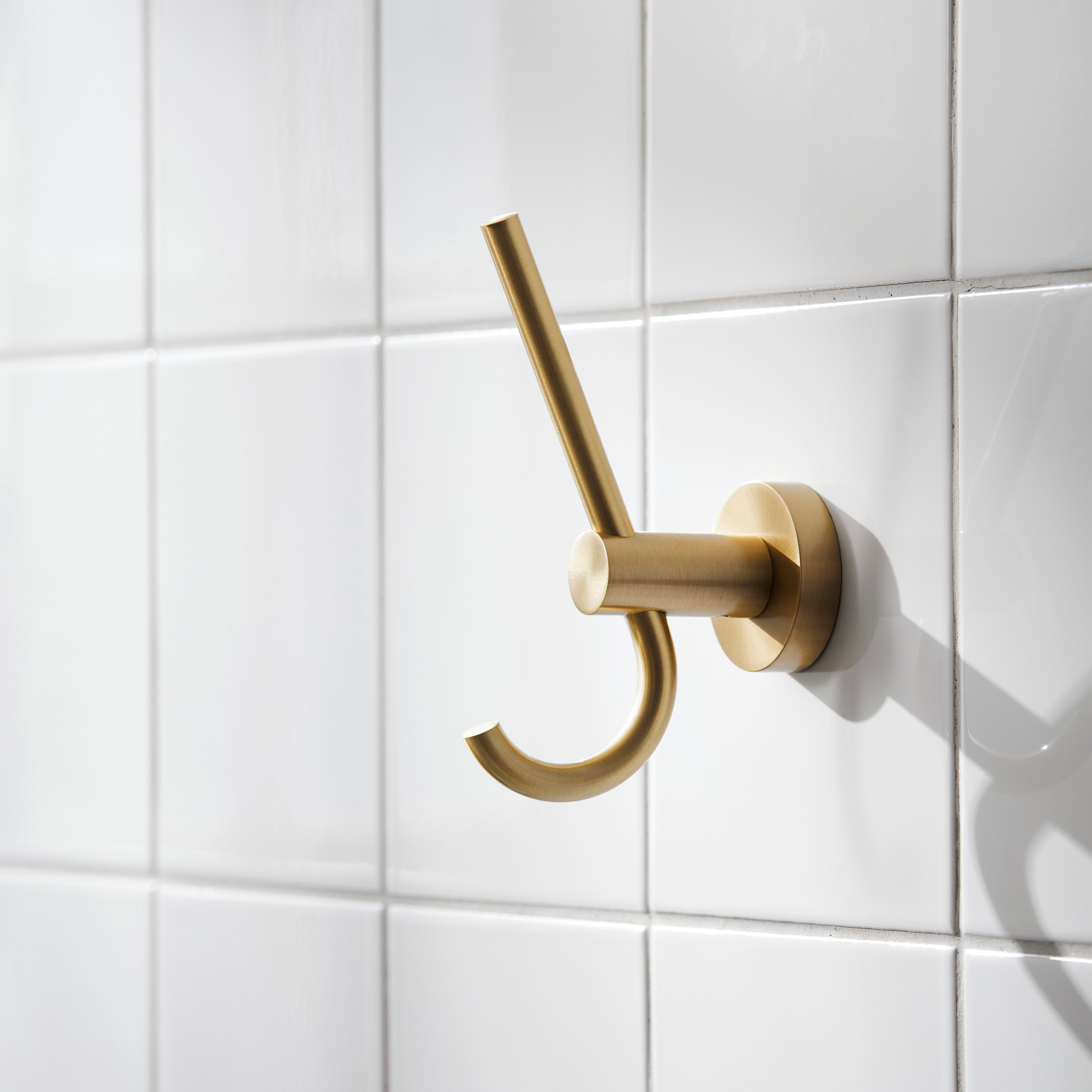 Klädkrok från Miller Badrum. Väggplattans diameter är 45 mm. Serien Bond finns i flera utföranden.