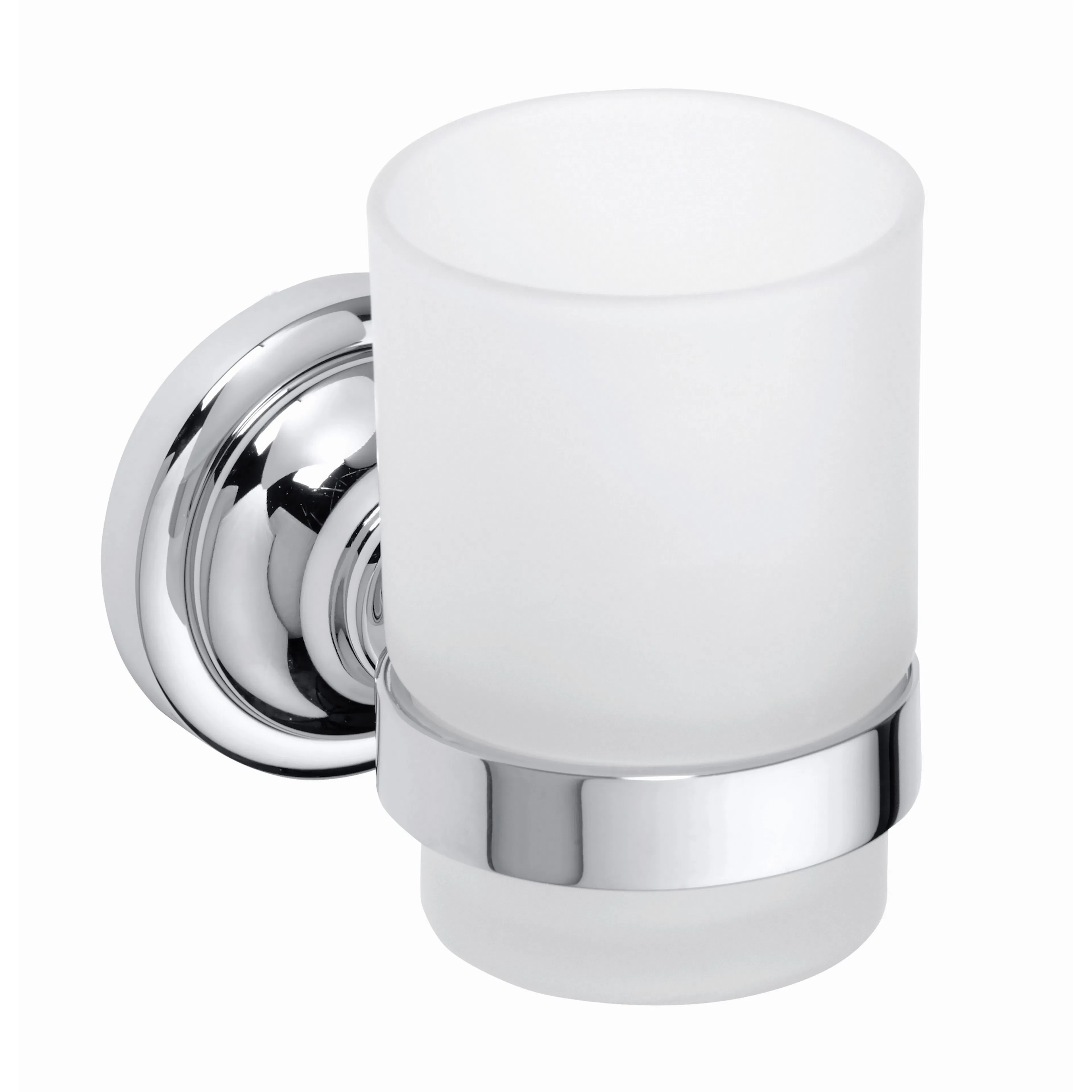 Tandborstglas Classic från Duschbyggarna är ett stilren tandborstglas i frostat glas med en hållare i metall. Det skruvas eller limmas upp på väggen.
