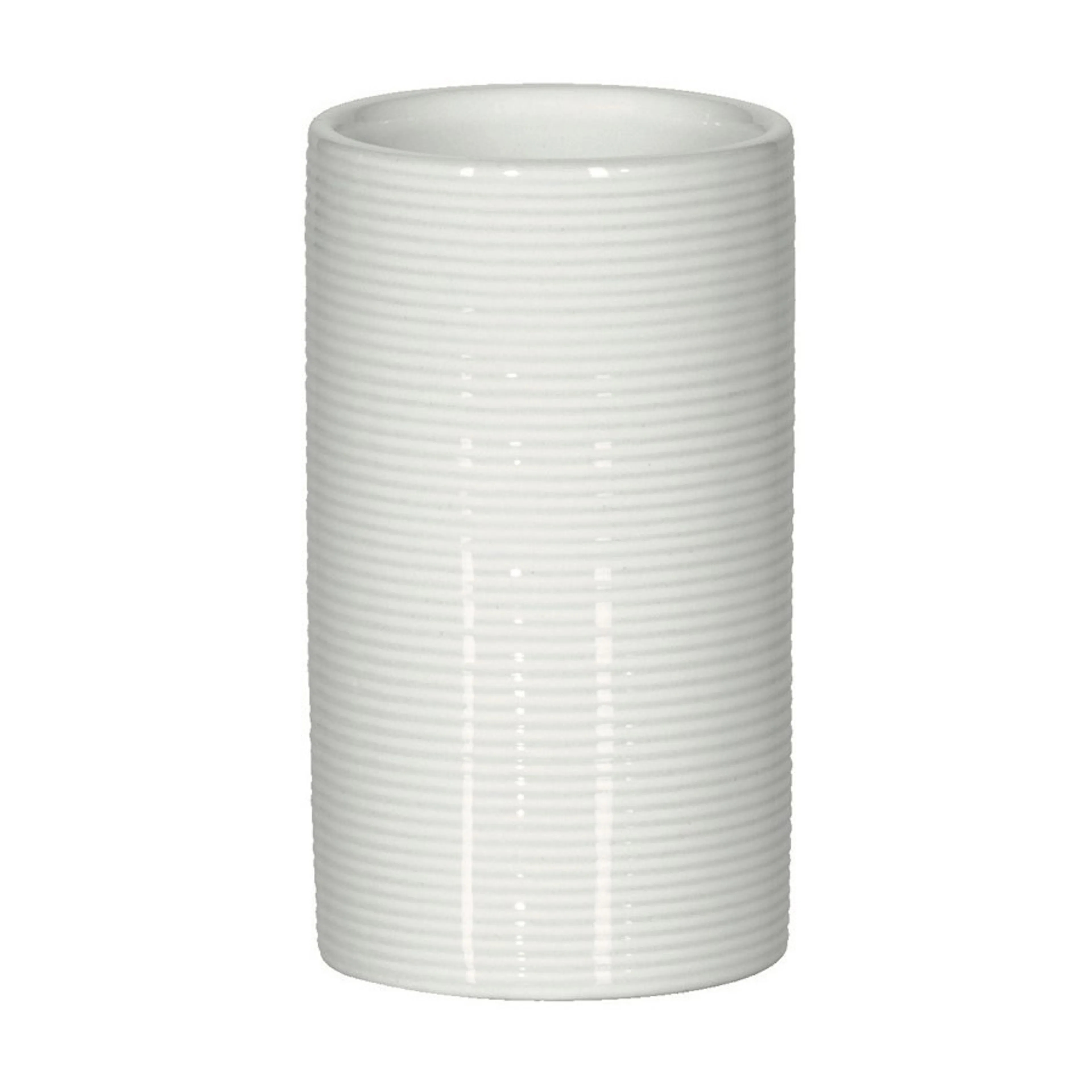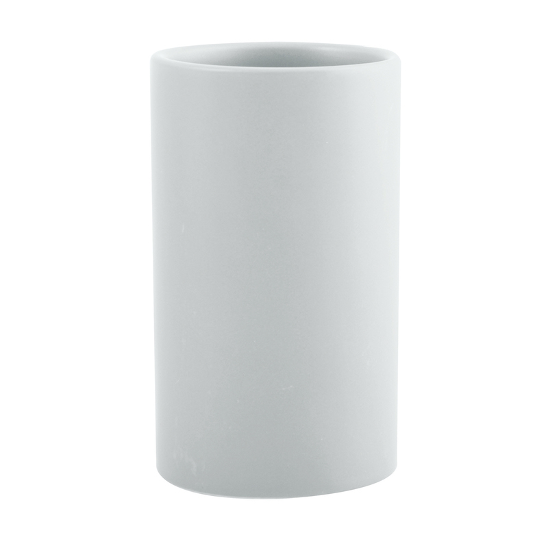 Spirella Tube är en mugg gjord i stengods. Den vita och kromade muggen är gjord i porslin.