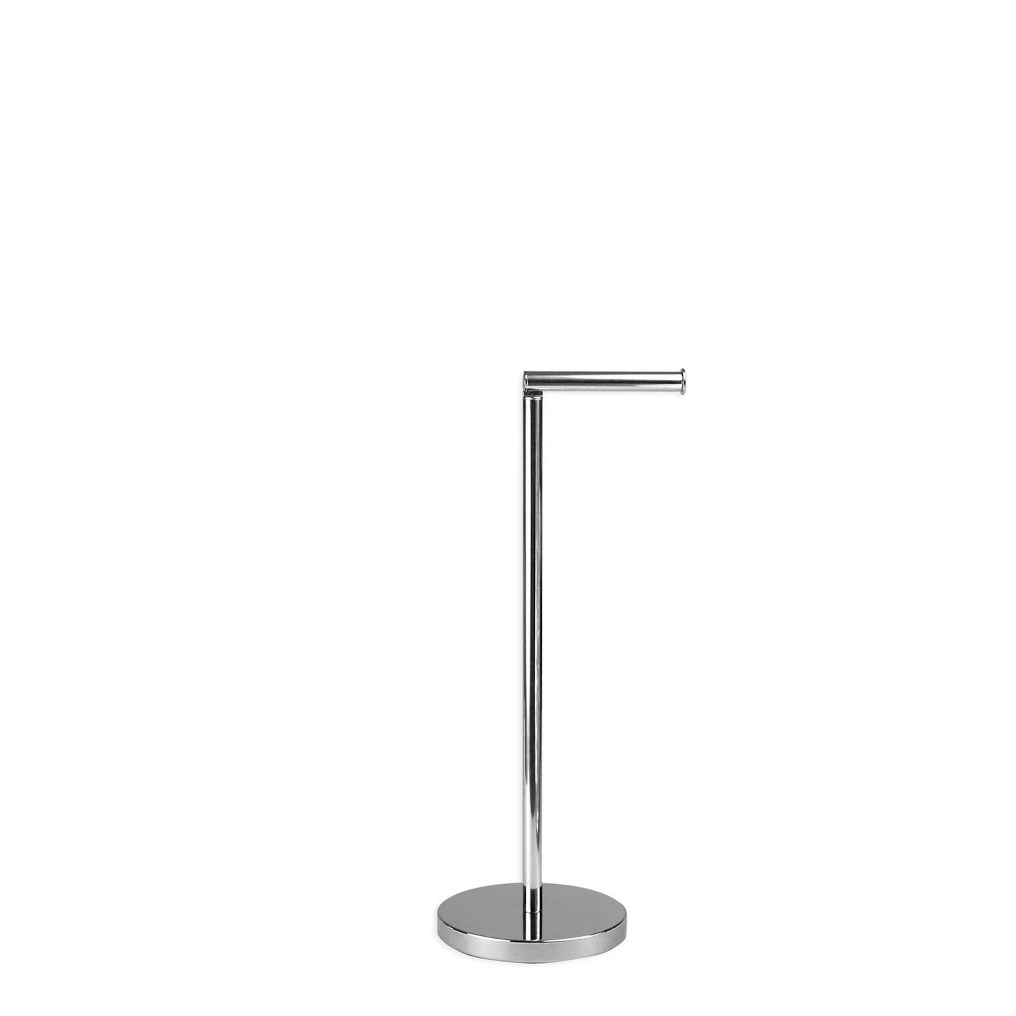 Toalettpappershållare med plats för fyra extra rullar. Modern design som passar de flesta badrum. Tyngd i bottenplattan för extra stabilitet.