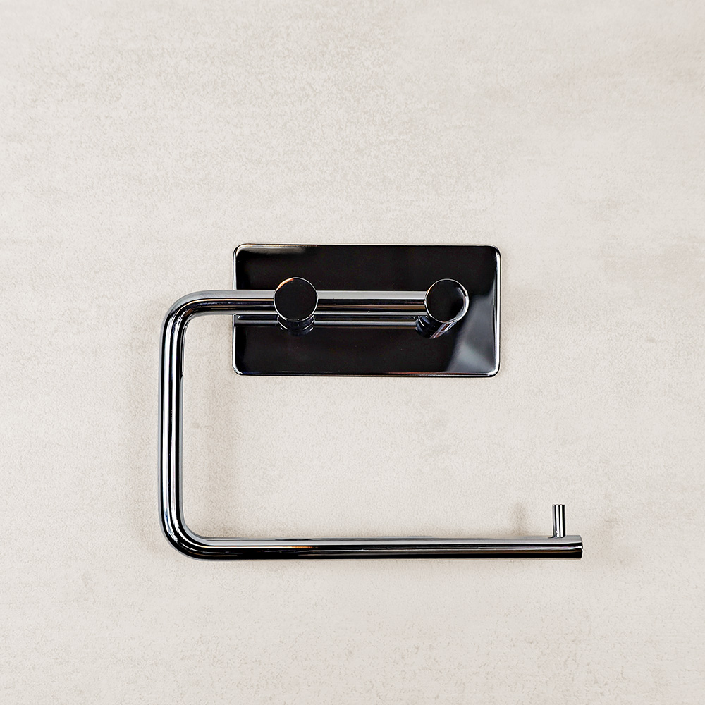 En stilren toaletthållare från Westerbergs. Toaletthållaren monteras enkelt med självhäftande baksida, helt utan borrning, och fästs på släta och beständiga ytor som kakel eller lackerade.