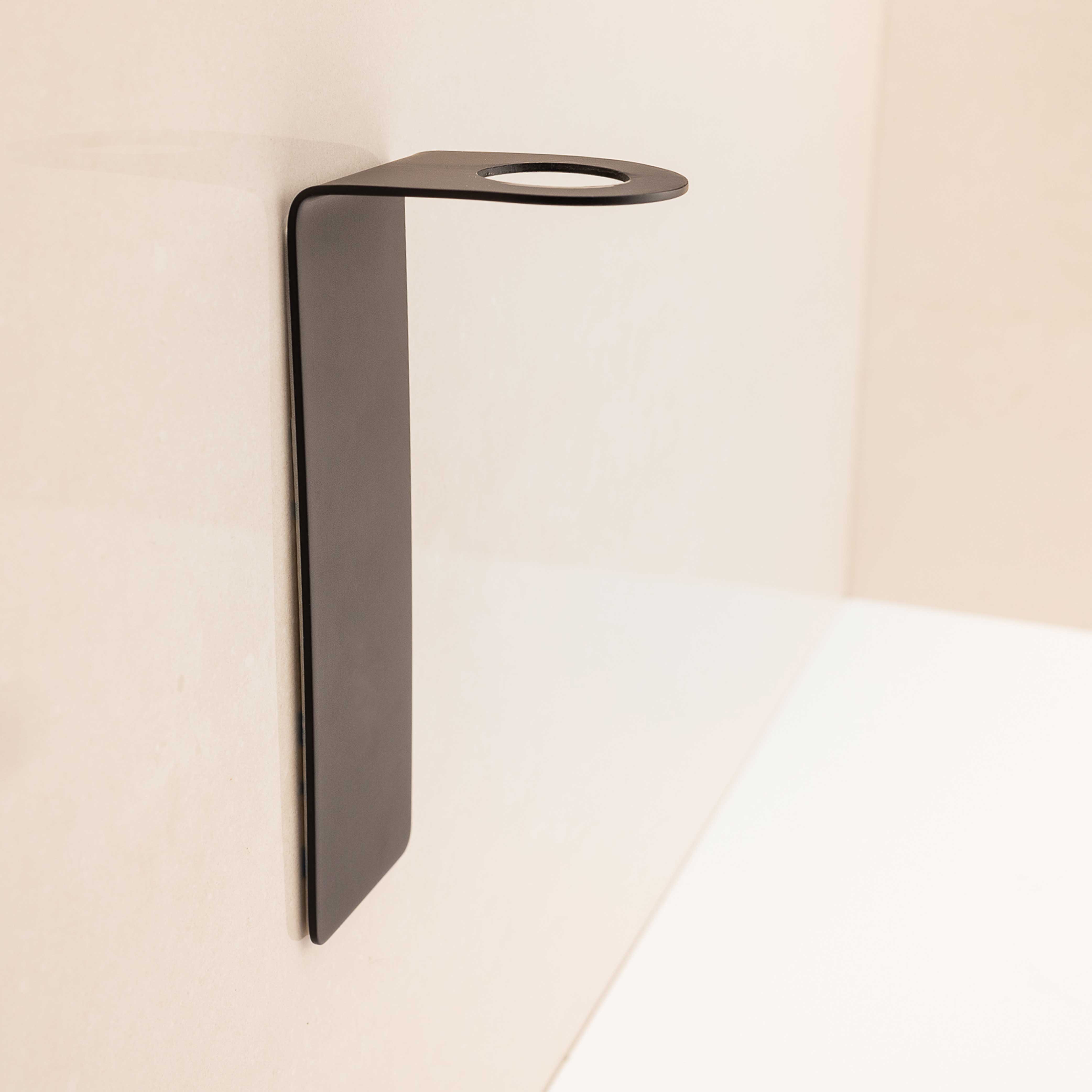 Tvålhållare från Lavabo i serien Luna. Hållaren gör det möjligt att få bort tvålflaskan från diskhon, eftersom den är till för att hänga på väggen.