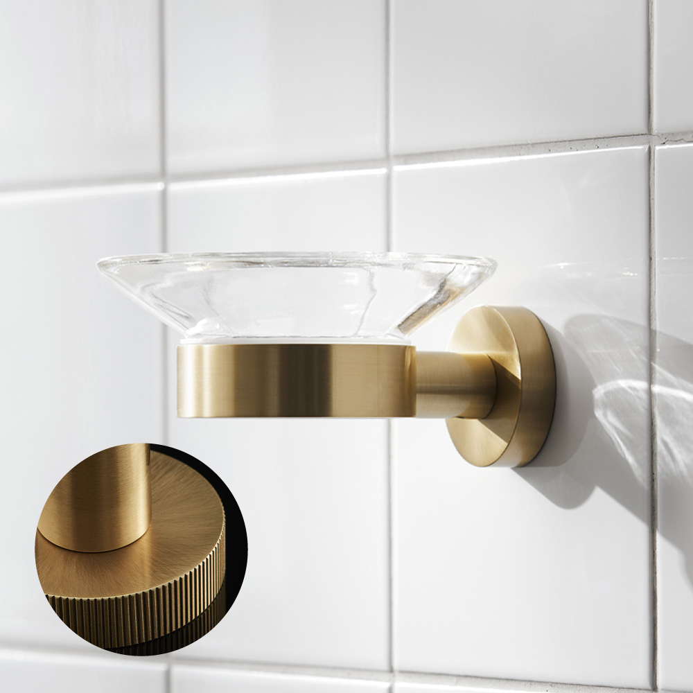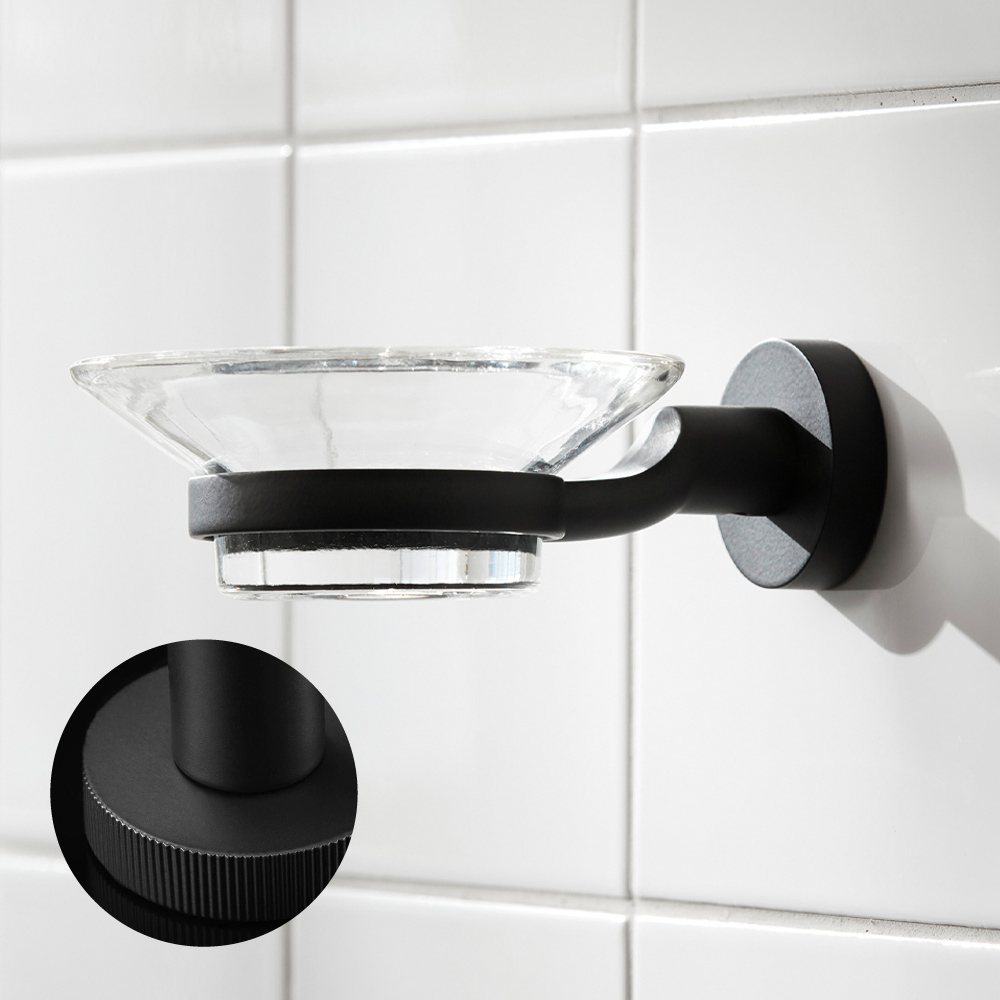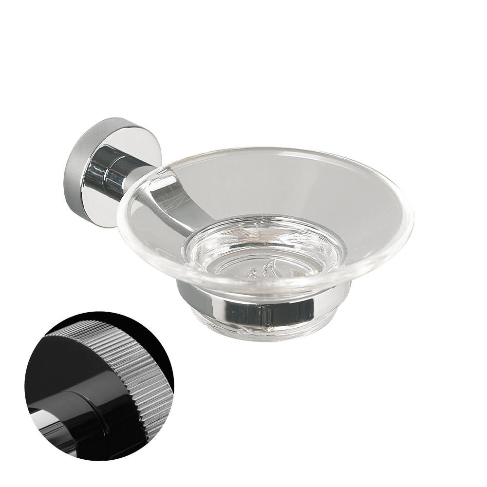 Tvålkopp i klarglas från Miller Badrum. Väggplattans diameter är 45 mm.