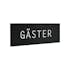 Självhäftande skylt med texten GÄSTER. Skylten är tillverkad i rostfritt stål och finns i olika ytor.
