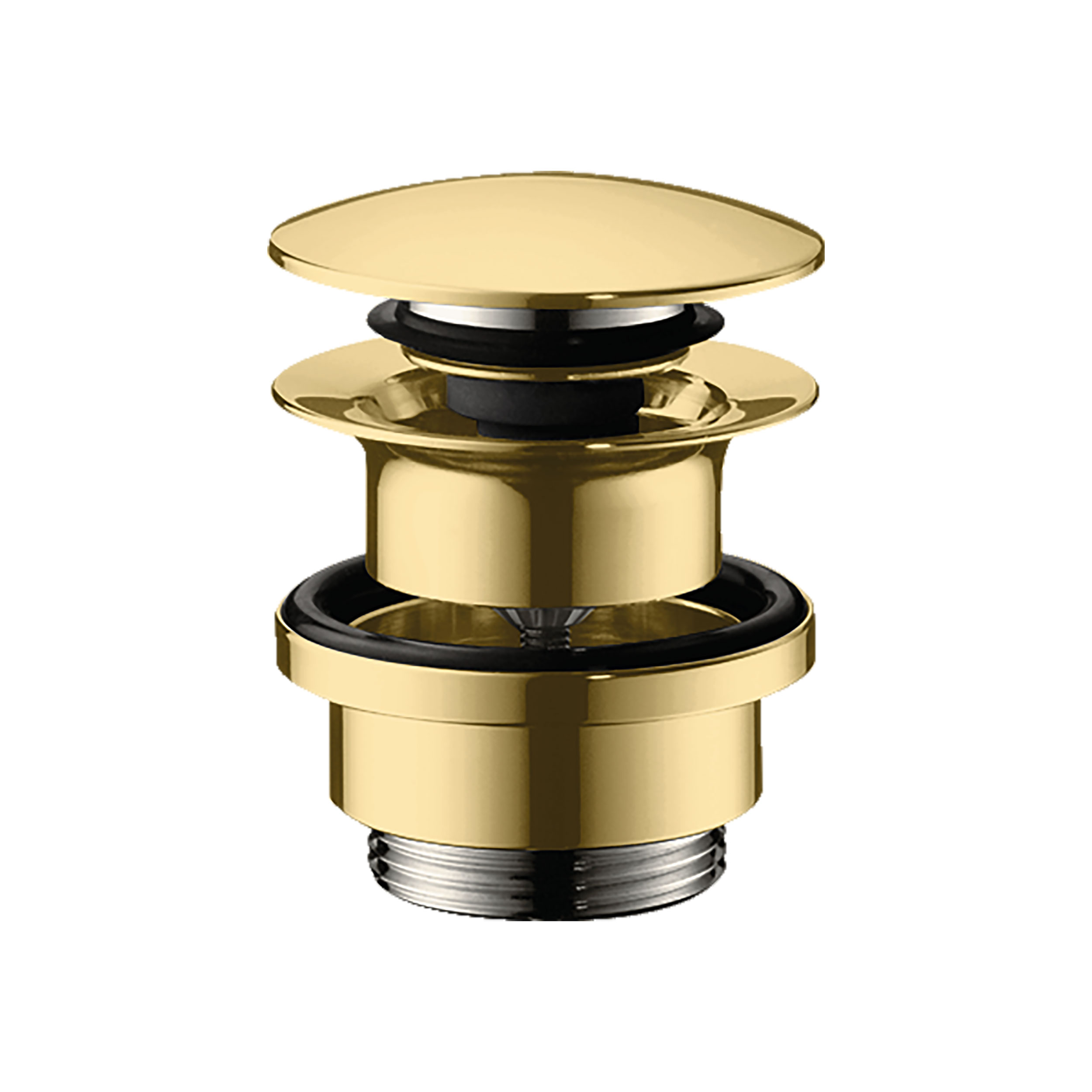 Bottenventil Push-Open från Hansgrohe är en elegant bottenventil gjord av mässing. Det är en tryckplugg för tvättställ med bräddavlopp/överfyllnadsskydd. Anslutningsstorlek G 1 1/4.