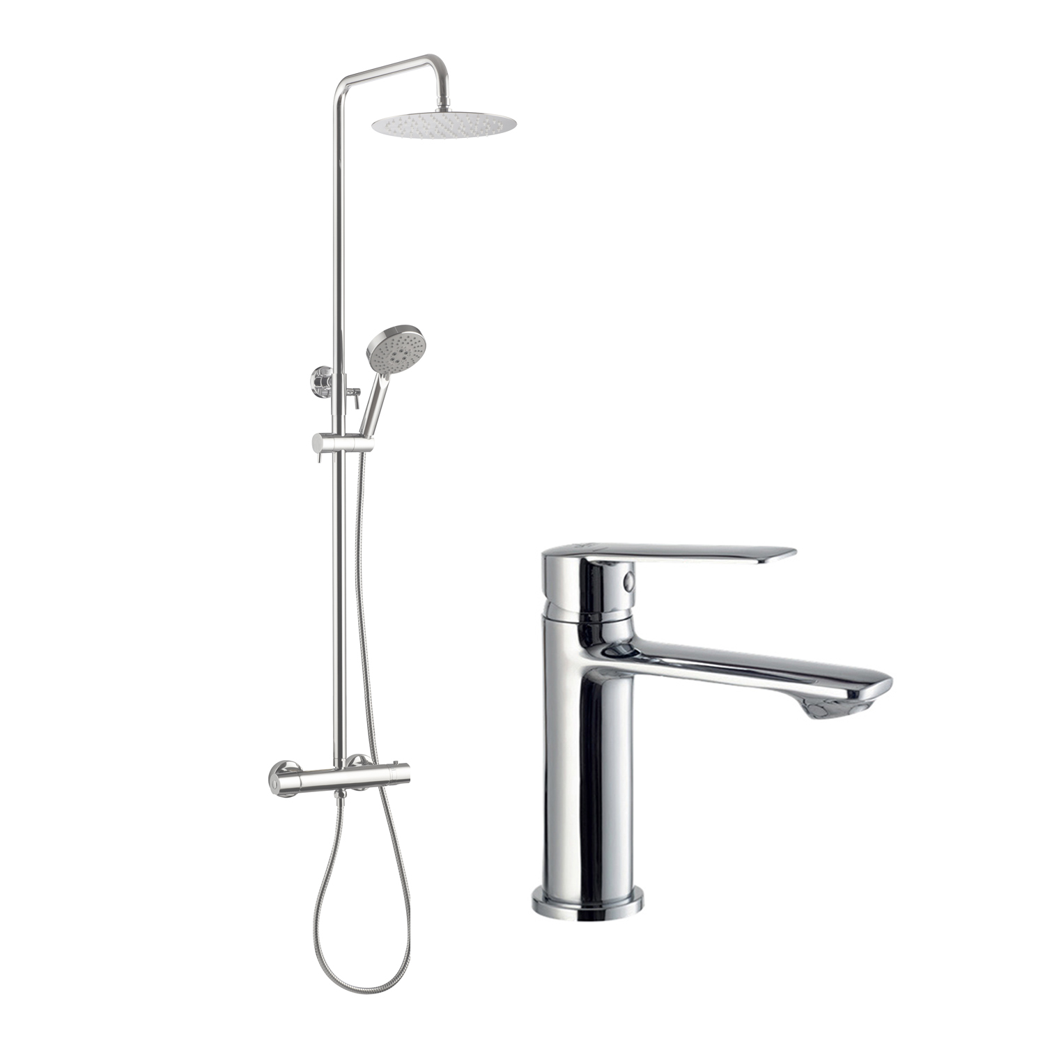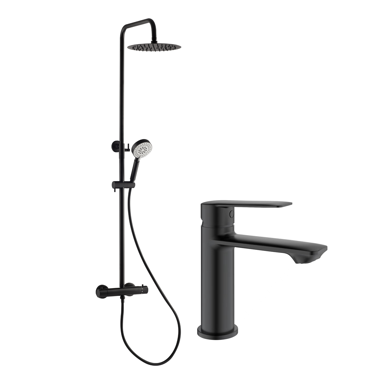 Blandarpaket Macro Design Imo Taro är en modern och stilren lösning från Macro Design som kombinerar den kompakta och användarvänliga tvättställsblandaren Taro med den eleganta och funktionella takduschen Imo. Ett perfekt paket för dig som vill ha både design och komfort i badrummet.