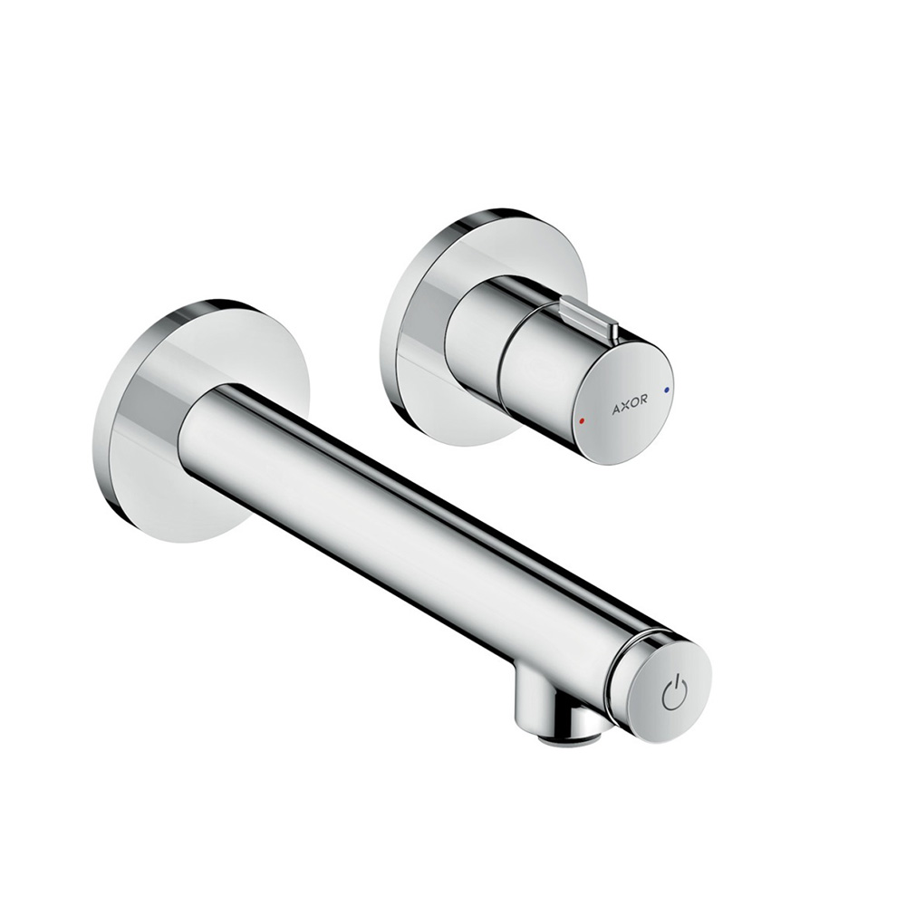 Tvättställsblandaren måste kompletteras med inbyggnadsdelen Axor för 2-håls blandare (art-nr: 13622180). Inbyggnadsdelen i sig behöver installeras i en säkerhetsbox, från t.ex. Joramark.