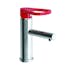 Tvättställsblandare Gustavsberg O.novo Kids med cylindriska former är speciellt framtagen för barn, blandaren är i krom och vredet finns att få i olika färger. Den är skållningssäker och har en tillförlitlig och justerbar inställning för maxtemperatur. Maxflöde 5l/min. Levereras utan bottenventil.