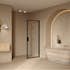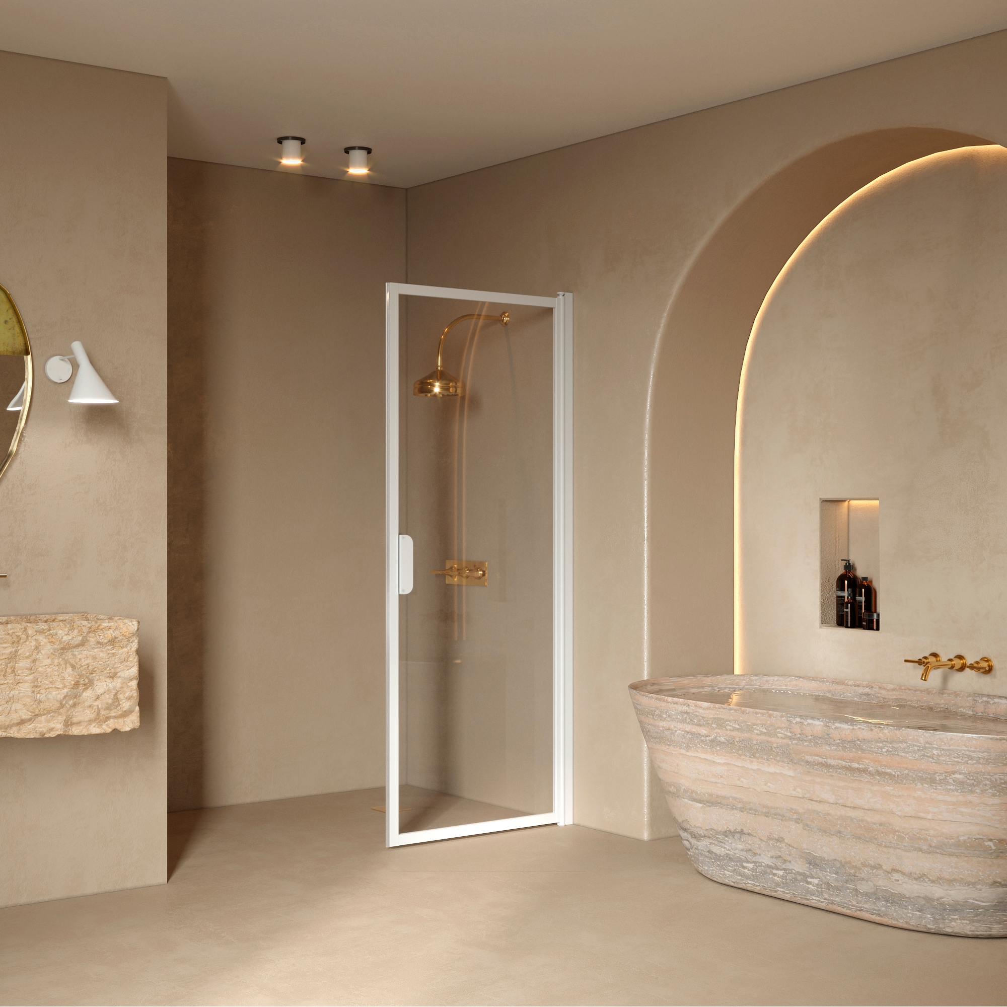 Profilen för väggfäste har 15 mm justeringsmån. Justeringsmånen kan utnyttjas för kompensation av en eventuell lutning i väggen eller för ökning av duschdörrens bredd från det angivna måttet. Om du till exempel väljer en produktbredd på 500 mm är den alltid 500 mm som smalast och 515 mm som bredast. Bredden kan ytterligare ökas med en 34 mm breddningsprofil (tilläggsutrustning). Breddningsprofilen kan skåras till exempel för genomdragning av ytvattenrör.
