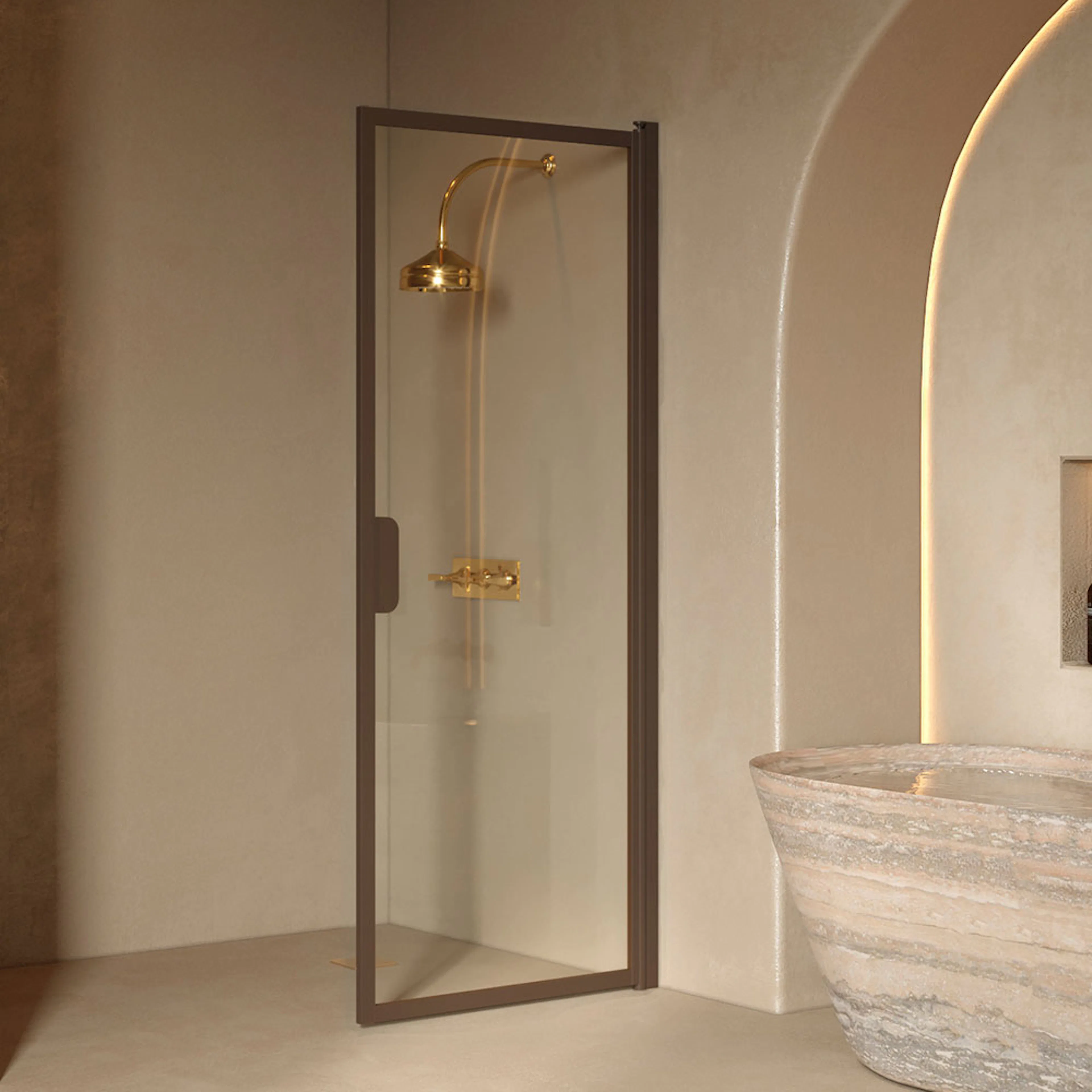 Duschdörr Hietakari Bläk 732 New York Vändbar är en vändbar duschdörr i industriell stil. Den vändbara duschdörren skyddar effektivt mot vattenstänk då den monteras med en tillkommande släptätningslist. När duschen inte används kan duschdörren vändas mot väggen. Duschdörren vänds 90 grader i bägge riktningarna och förses med justerbar centrering. Centreringen strävar efter att återställa duschdörren till öppen respektive stängd position. Dörren är försedd med lyftgångjärn.