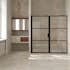 Duschdörr Hietakari Bläk 745 Tokyo Nisch består av en fast vägg och en vändbar dörr i industriell stil. Den fasta väggen förses med en golvlist som har 7 mm höjdtolerans, golvlisten monteras i golvet under den fasta duschpanelen. Ifall högre lutning finns bör produkten beställas med justeringsfot, då sockeltätning tillkommer. Den fasta duschväggen hålls stabil tack vare det sneda sidostaget. Istället för det sneda sidostaget, kan man välja duschväggen med ett långt sidostag, som installeras i 90 graders vinkel, finns att välja som tillval. Den vändbara duschdörren skyddar effektivt mot vattenstänk då den monteras med en tillkommande släptätningslist. Duschdörren förses med justerbar centrering och är försedd med lyftgångjärn.
