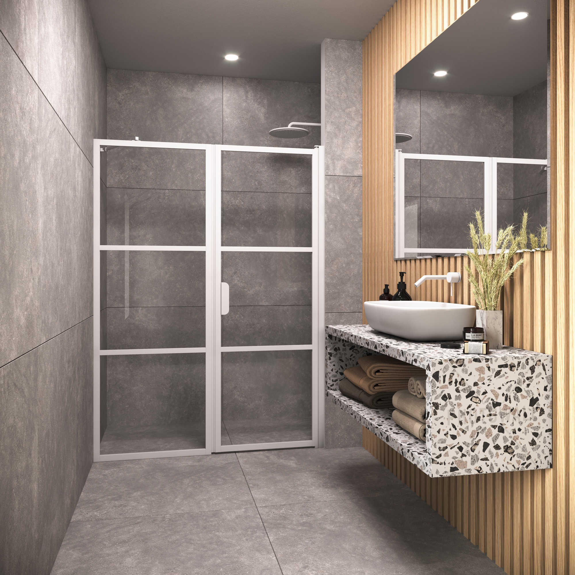 Duschdörr Hietakari Bläk 745 Tokyo Nisch består av en fast vägg och en vändbar dörr i industriell stil. Den fasta väggen förses med en golvlist som har 7 mm höjdtolerans, golvlisten monteras i golvet under den fasta duschpanelen. Ifall högre lutning finns bör produkten beställas med justeringsfot, då sockeltätning tillkommer. Den fasta duschväggen hålls stabil tack vare det sneda sidostaget. Istället för det sneda sidostaget, kan man välja duschväggen med ett långt sidostag, som installeras i 90 graders vinkel, finns att välja som tillval. Den vändbara duschdörren skyddar effektivt mot vattenstänk då den monteras med en tillkommande släptätningslist. Duschdörren förses med justerbar centrering och är försedd med lyftgångjärn.