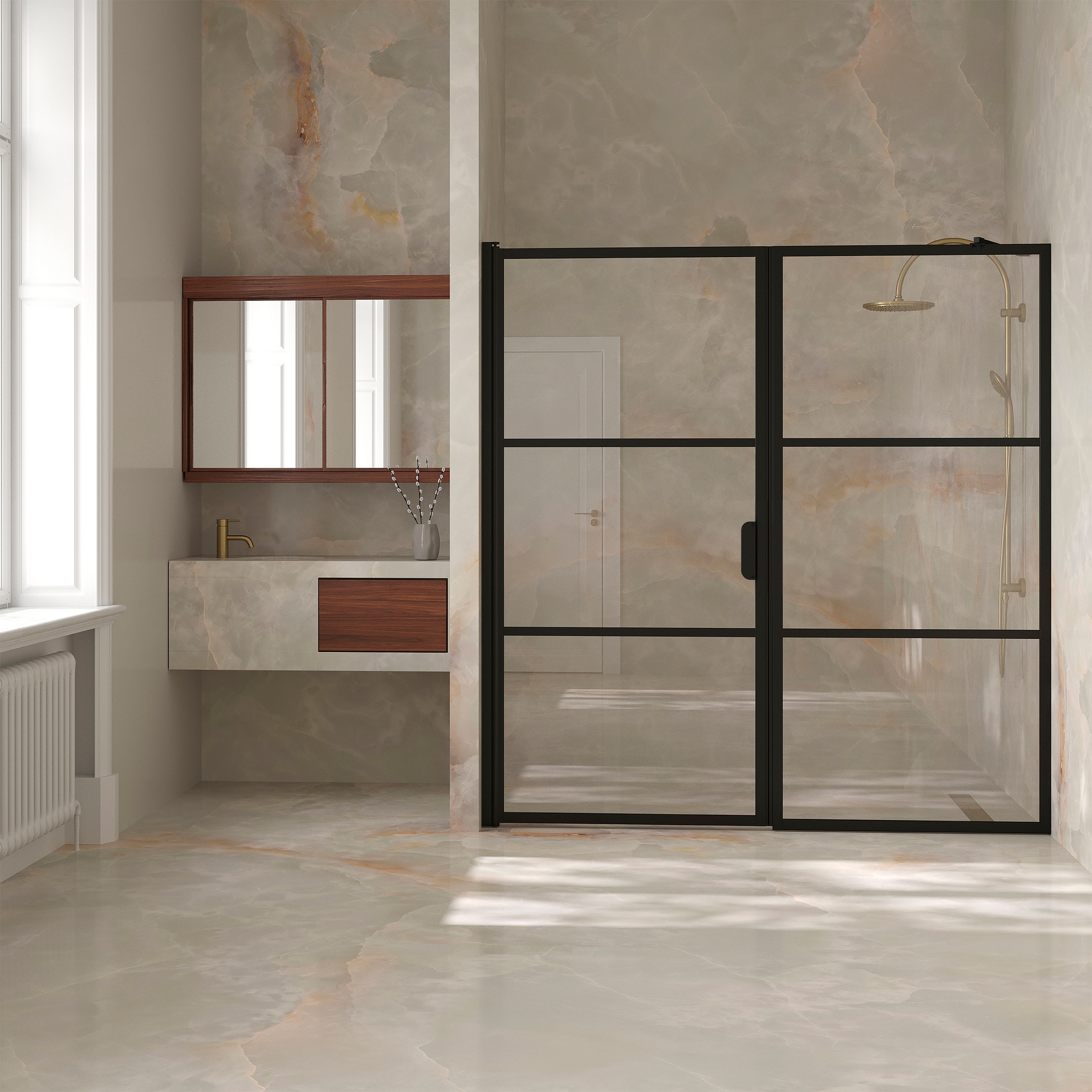 Duschdörr HietakariBläk 745 Tokyo Nisch Fast Vägg och Vändbar DörrFast Vägg (A) 709 x Vändbar Dörr (B) 807 mm, Klarglas, Svarta Profiler