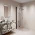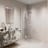 När duschen inte används kan duschdörren vändas och vikas ihop mot väggen. Duschdörren vänds 90 grader i bägge riktningarna och förses med justerbar centrering. Centreringen strävar efter att återställa duschdörren till öppen respektive stängd position. Dörren är försedd med lyftgångjärn.