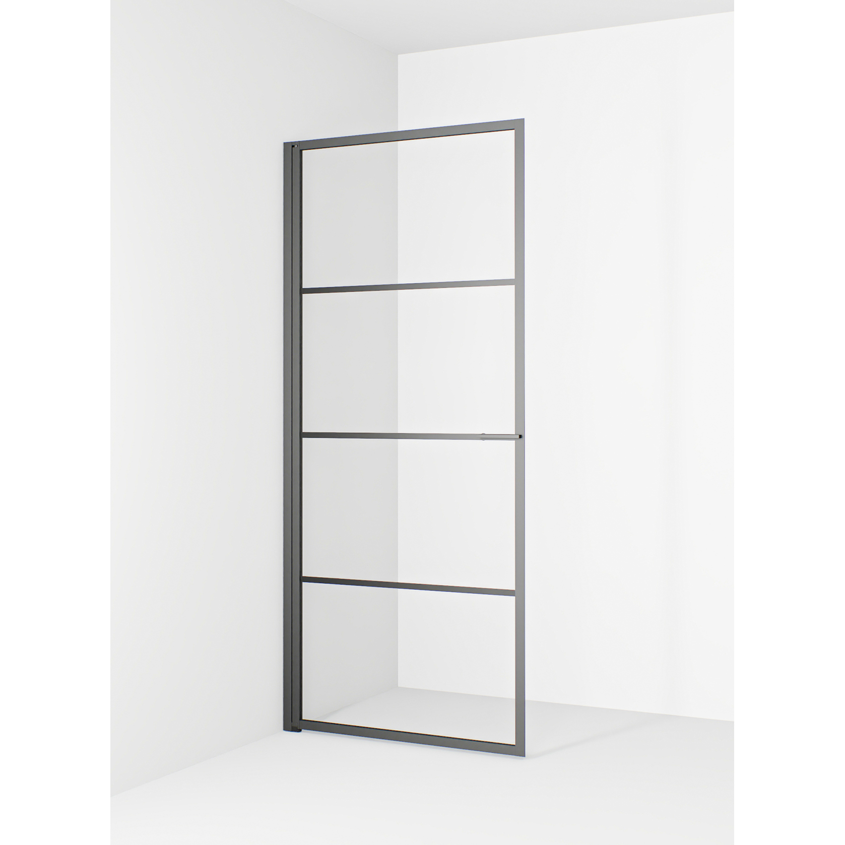 Spröjsen som ramar in och förhöjer den industriella designen sitter på utsidan för enklare rengöring. Duschdörren är av hög kvalitet och enkel att installera.