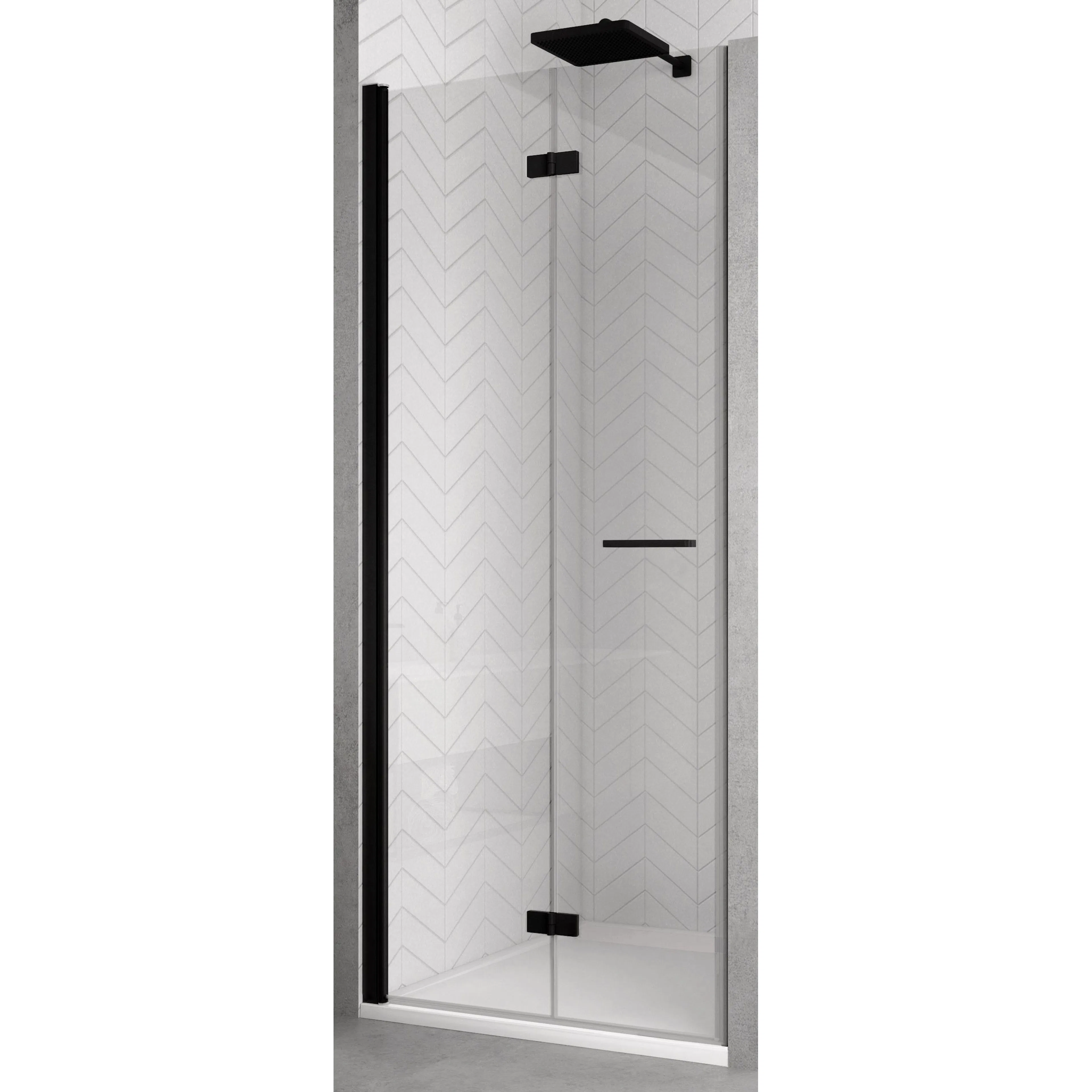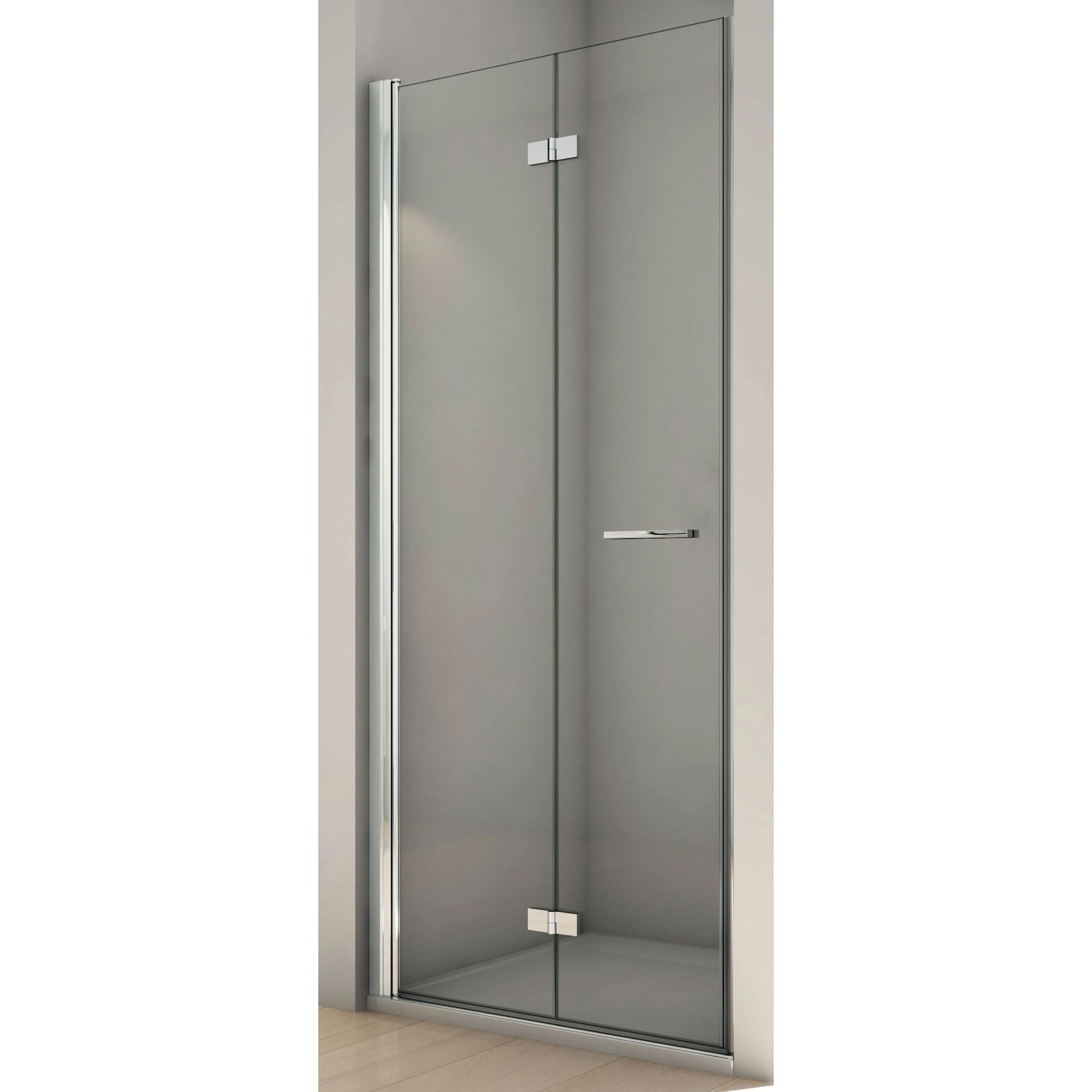 Duschdörr SanSwiss Solino Vikbar är en smart yt-effektiv duschdörr med 6 mm TSG klarglas och lyftgångjärn.