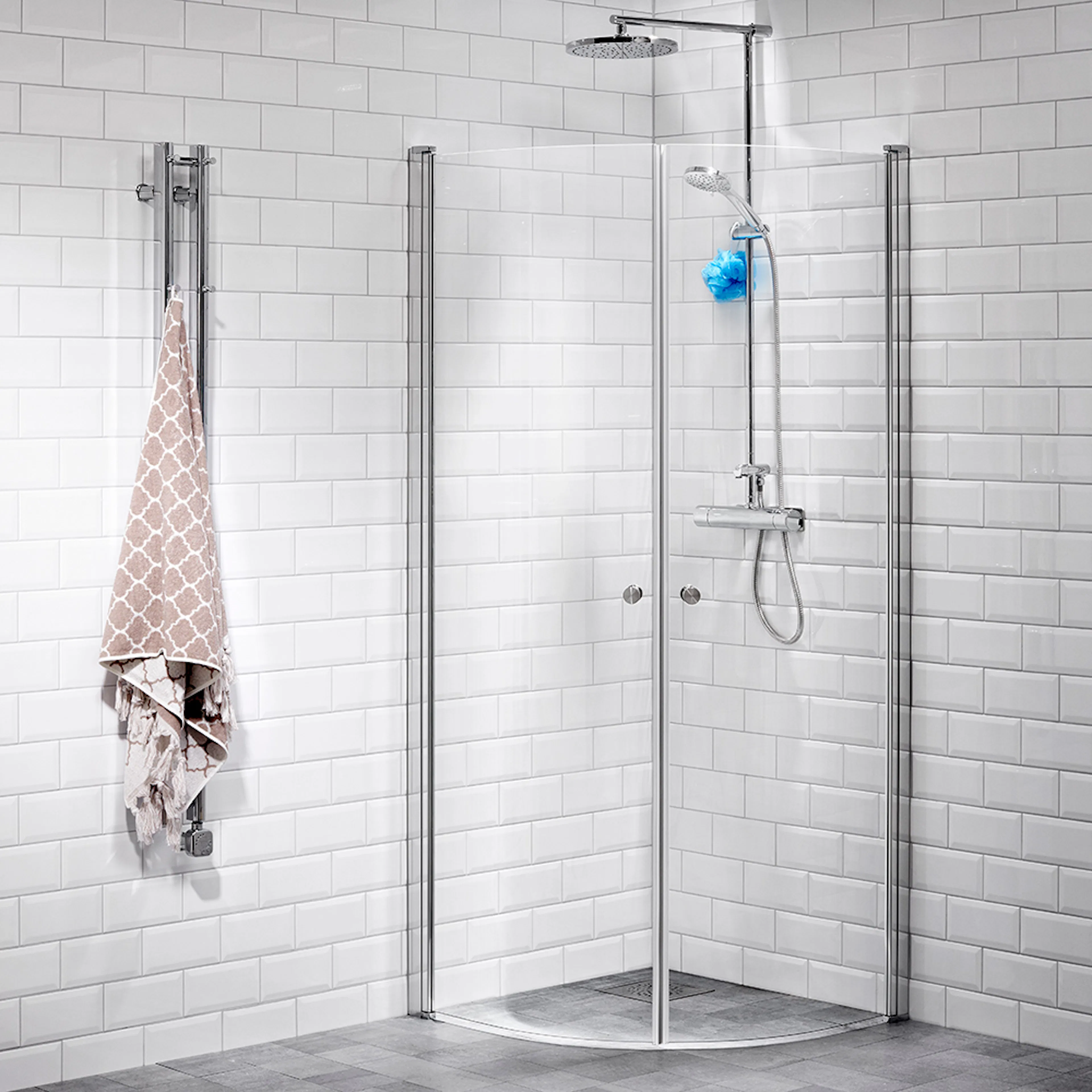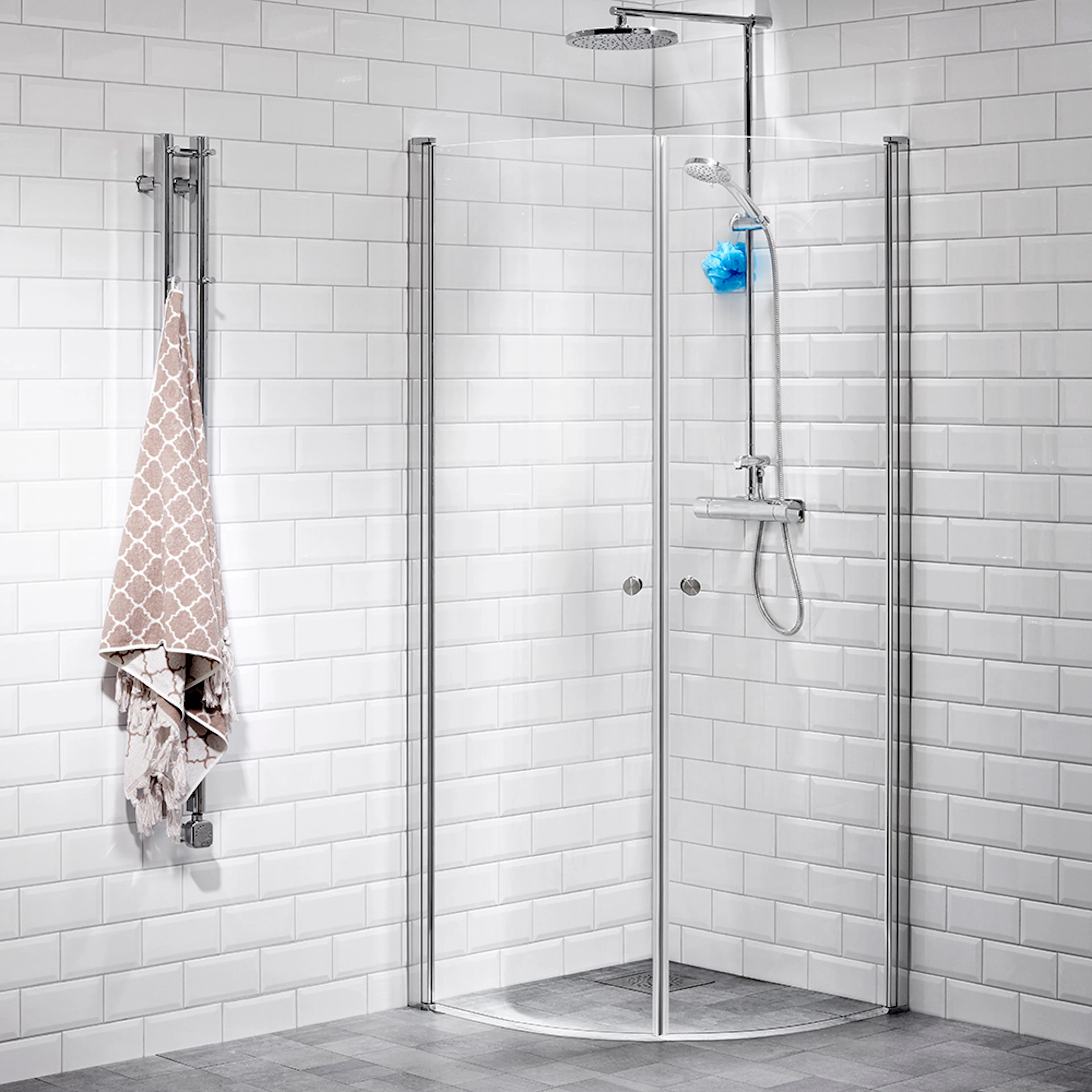 Duschhörn Alterna Lusso Svängd är ett stilrent duschhörn med mjukt rundade dörrar med snabbfästen för enklare montering och med limbar väggprofil. Duschhörnan med vändbara, svängda dörrar är tillverkad i 6 mm härdat säkerhetsglas med blankpolerade aluminiumprofiler i rostfritt stål. Den eleganta och moderna designen gör att duschen passar de flesta badrum. Duschdörrarna kan även öppnas inåt för platsbesparing, då höjs de 4 mm från golvet. Duschhörnan har justerbar väggprofil och levereras komplett med två duschdörrar, släplist, magnetlist och knopp/handtag.