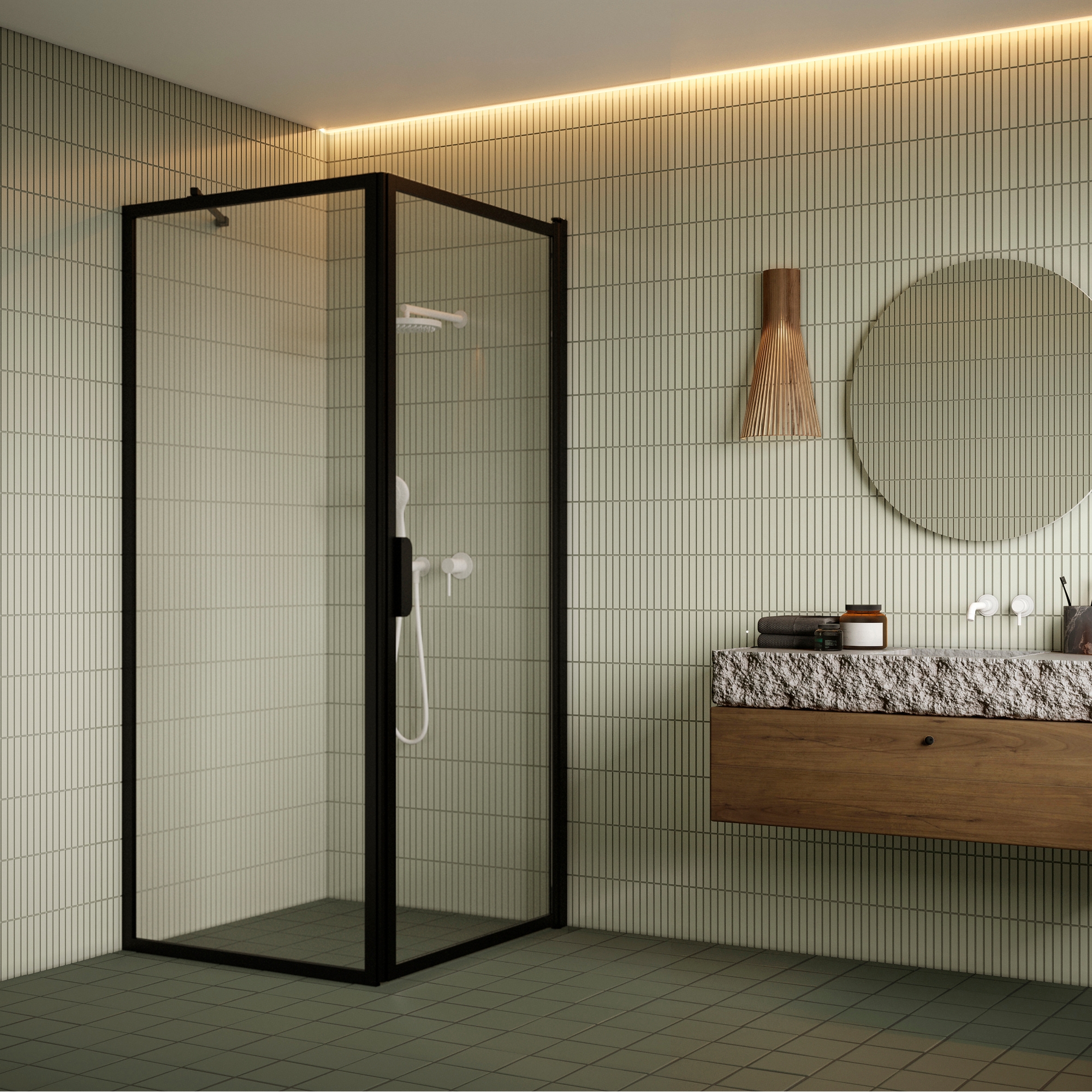 Duschhörn HietakariBläk 755 New York Fast Vägg och Vändbar Dörr