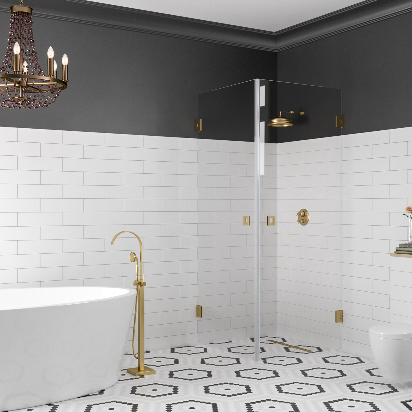 Duschhörnets delar kan man montera även tvärtom jämfört med hur det visas på grundbilden.