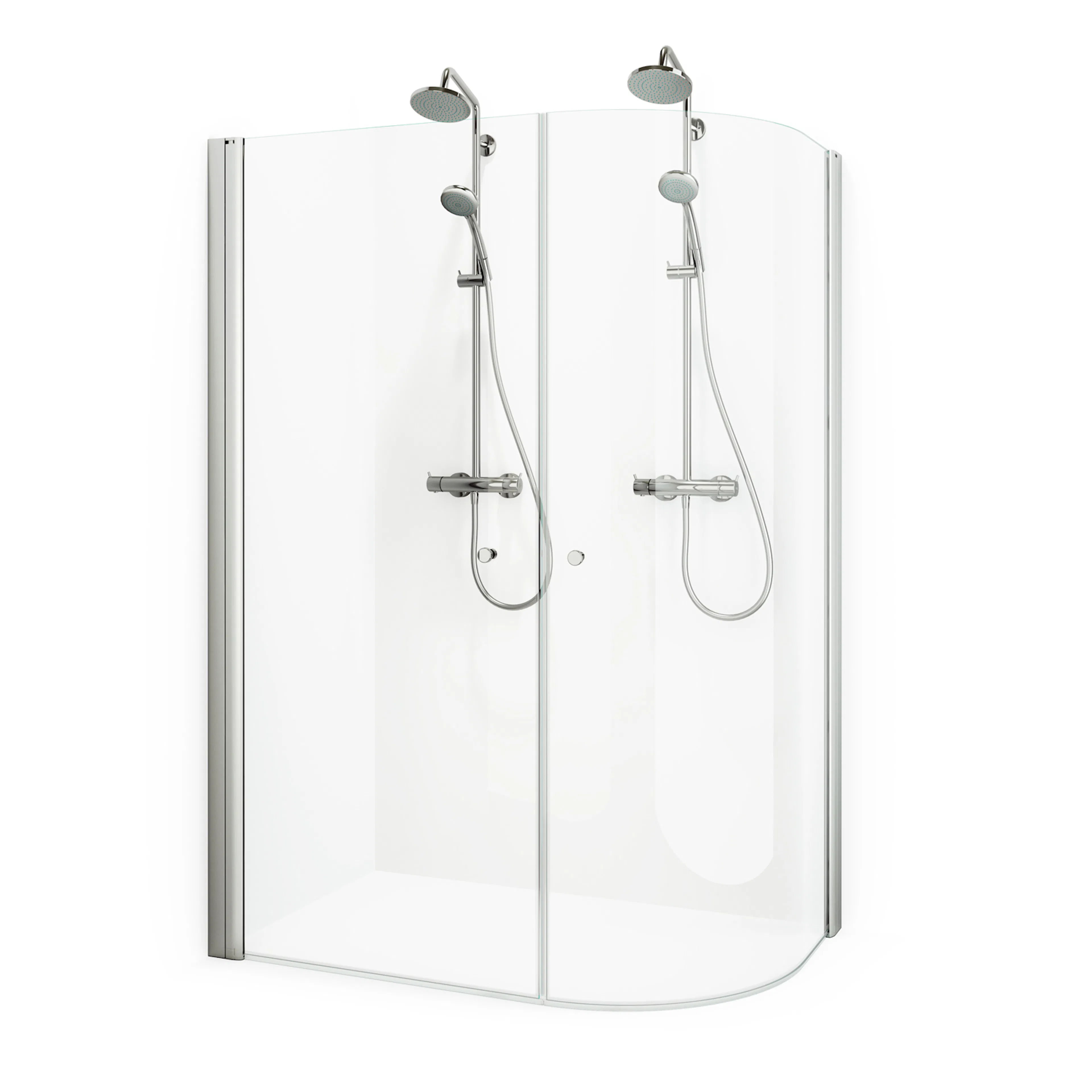 Stort duschhörn från Macro i snygg J-formad design som ger det lilla extra. Här kan du få plats med dubbla duschset så att ni kan duscha samtidigt men passar även många äldre då många vill ha en rymlig dusch med plats för en pall.