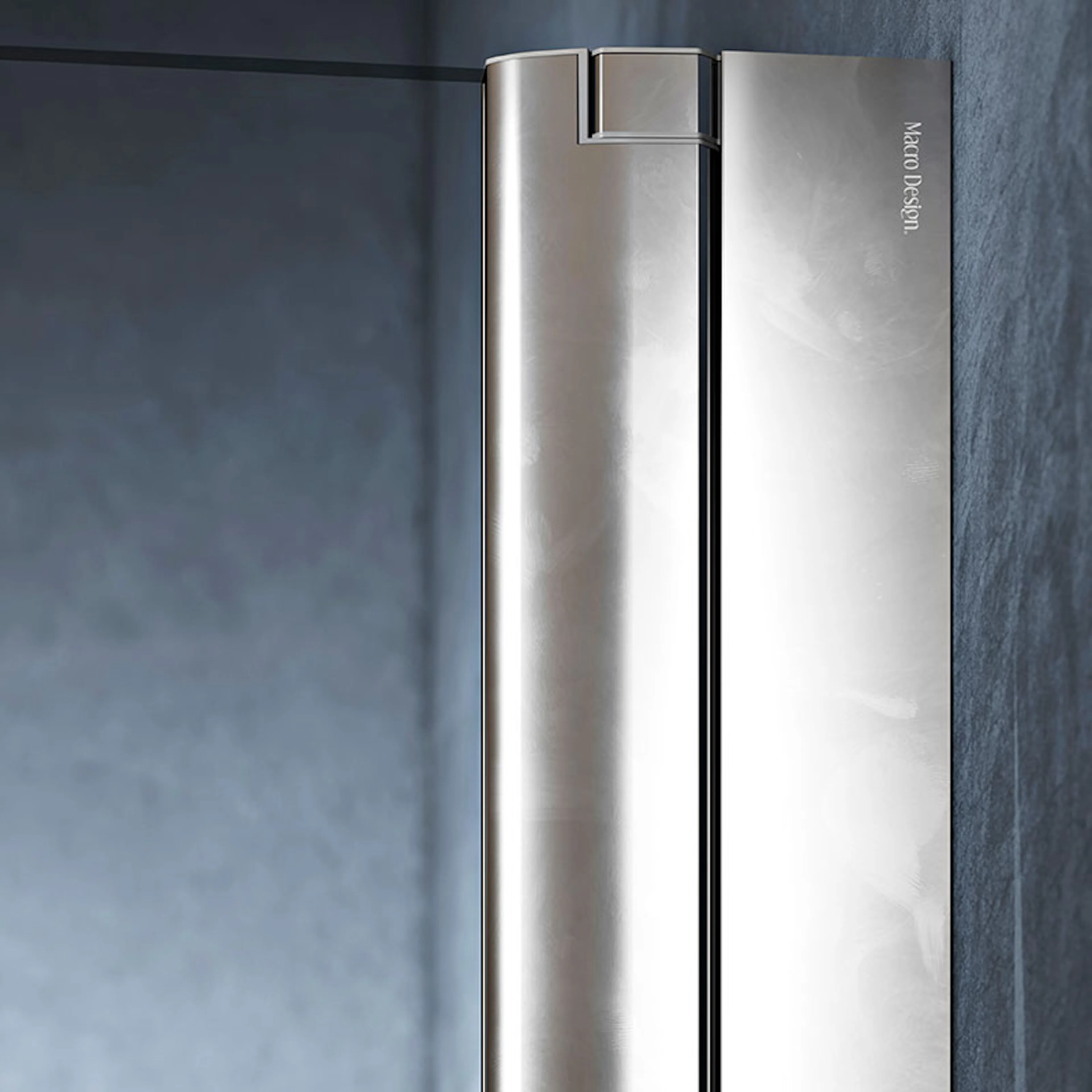 Duschhörn Macro Design Spirit Swing Vikbar är en elegant duschhörna med en fast vägg och en vikbar dörr som kan vikas på mitten med ljudlös lyftfunktion som gör att du smidigt kliver in i duschen utan krångel. En smart lösning för dig som inte har så mycket plats, men ändå vill ha den där lyxiga känslan i badrummet. Första måttet avser duschväggen (vägg x dörr).