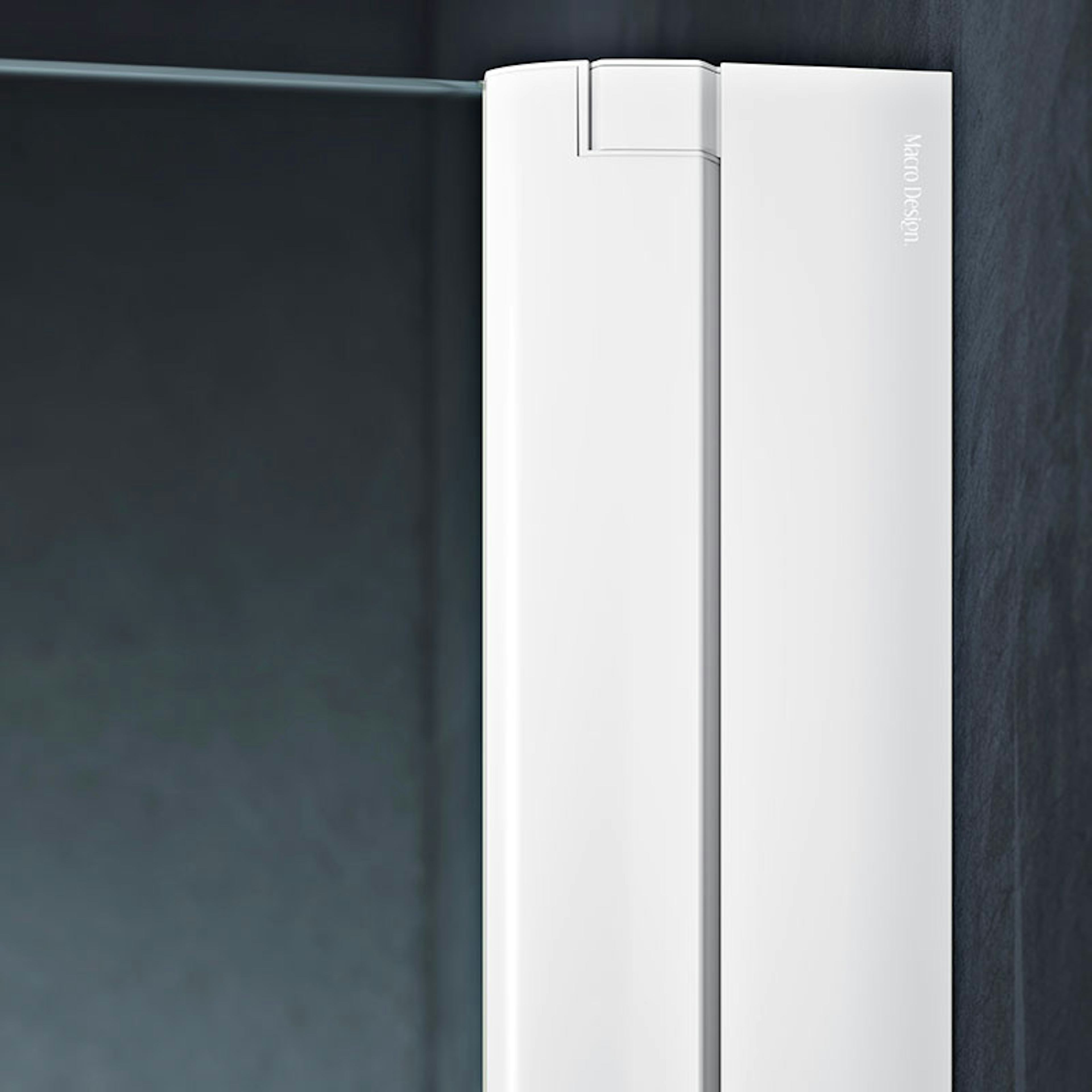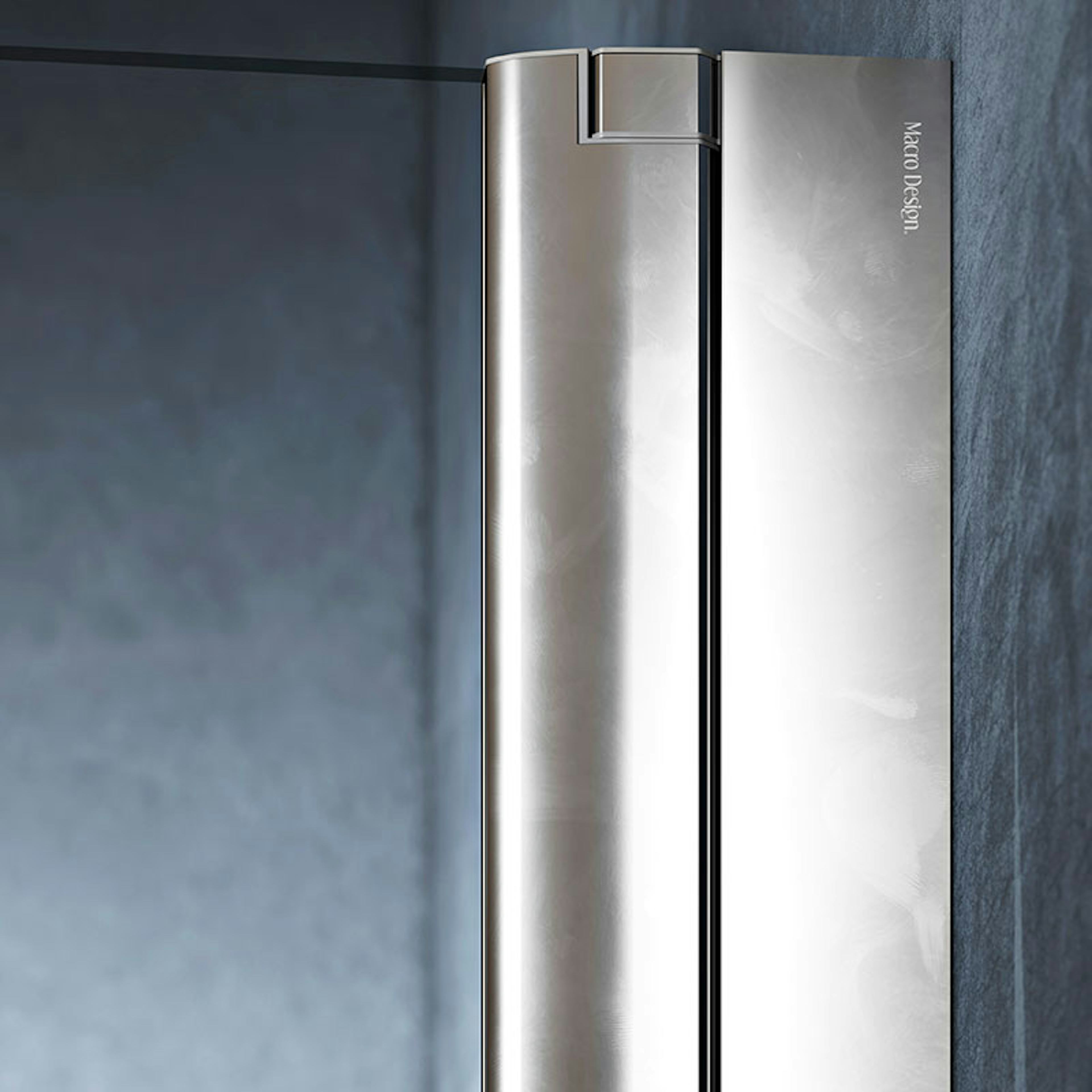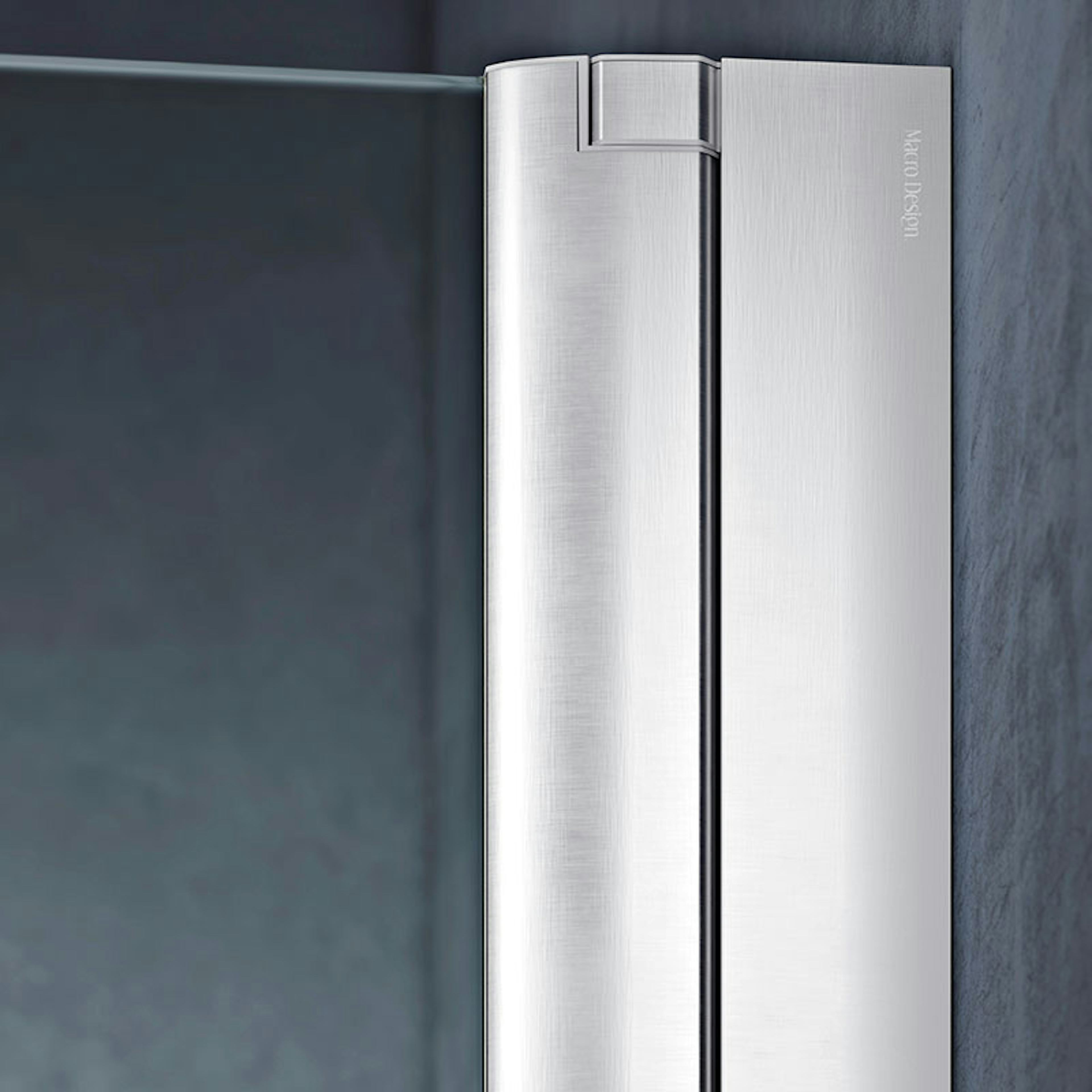 Duschhörn Macro Design Spirit Swing Vikbar är en elegant duschhörna med en fast vägg och en vikbar dörr som kan vikas på mitten med ljudlös lyftfunktion som gör att du smidigt kliver in i duschen utan krångel. En smart lösning för dig som inte har så mycket plats, men ändå vill ha den där lyxiga känslan i badrummet. Första måttet avser duschväggen (vägg x dörr).