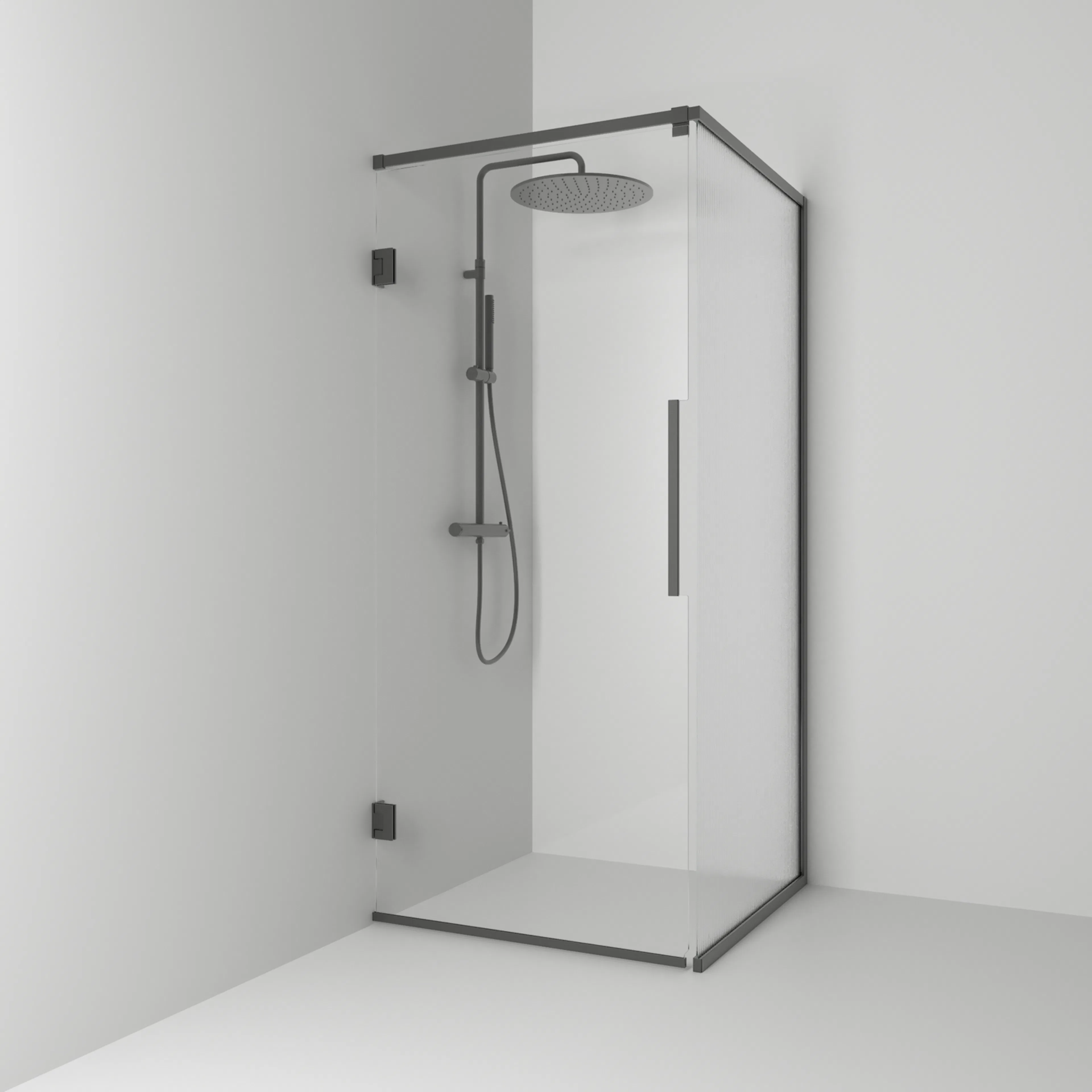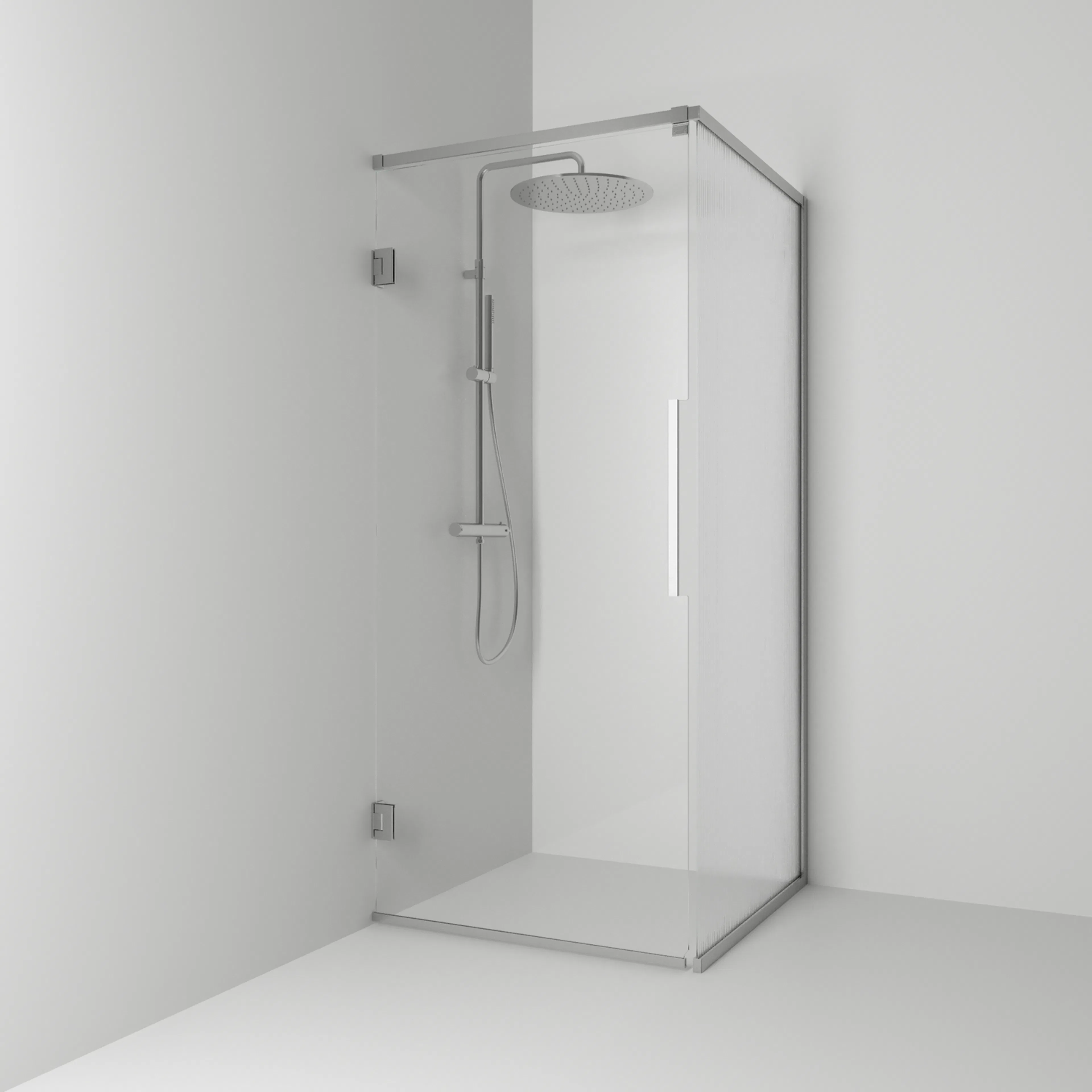 Langfoss Duschhörn består av en fast vägg och en duschdörr. Duschhörnet finns att välja med höjd 200 cm (201 cm ovankant med tillvalet gardinskena) eller höjd 230 cm (231 cm ovankant med tillvalet gardinskena). Härdat säkerhetsglas 6 mm. Väggprofil medger ej rördragning. Köp till rördragningsprofil, gardinskena och gardin som finns i flera färger.