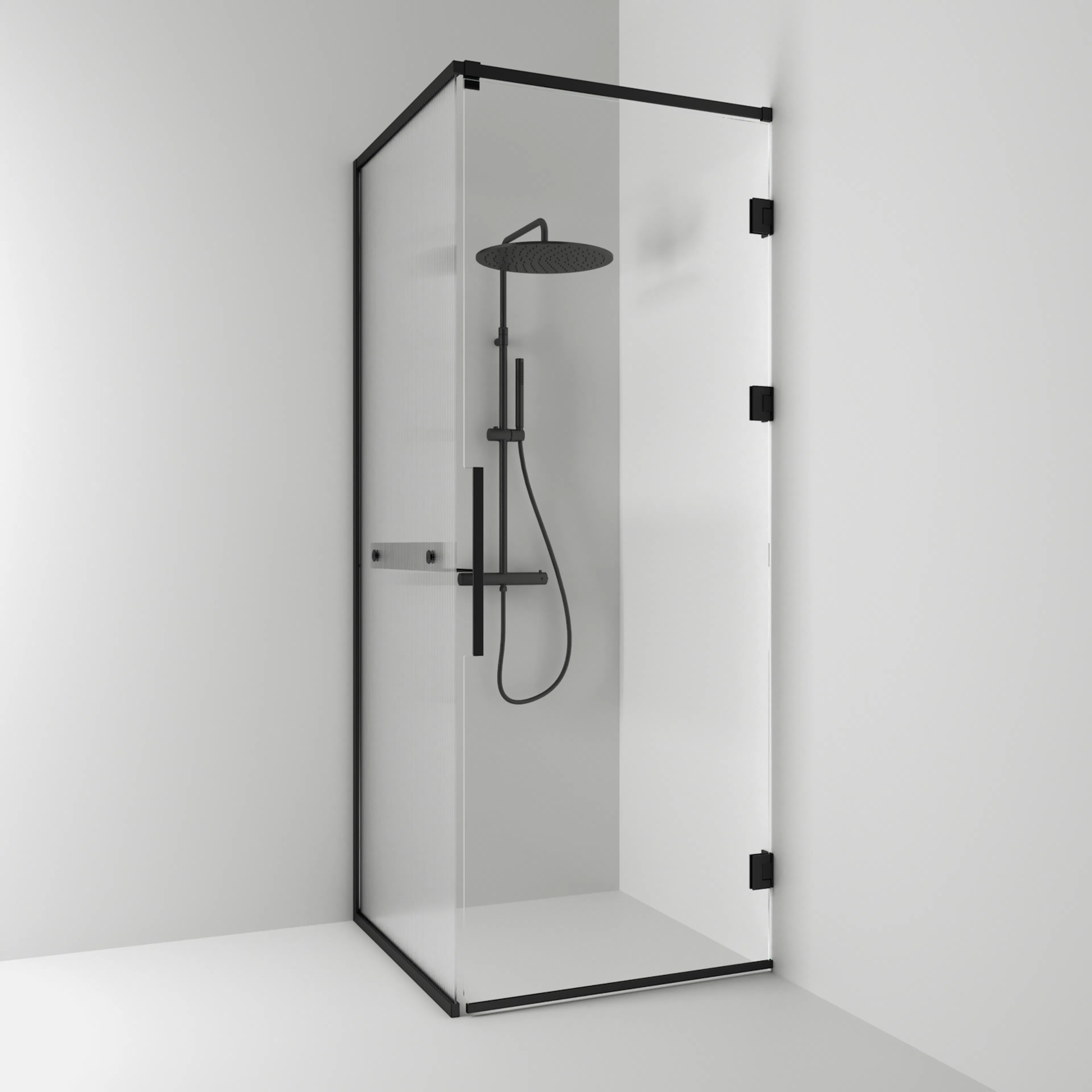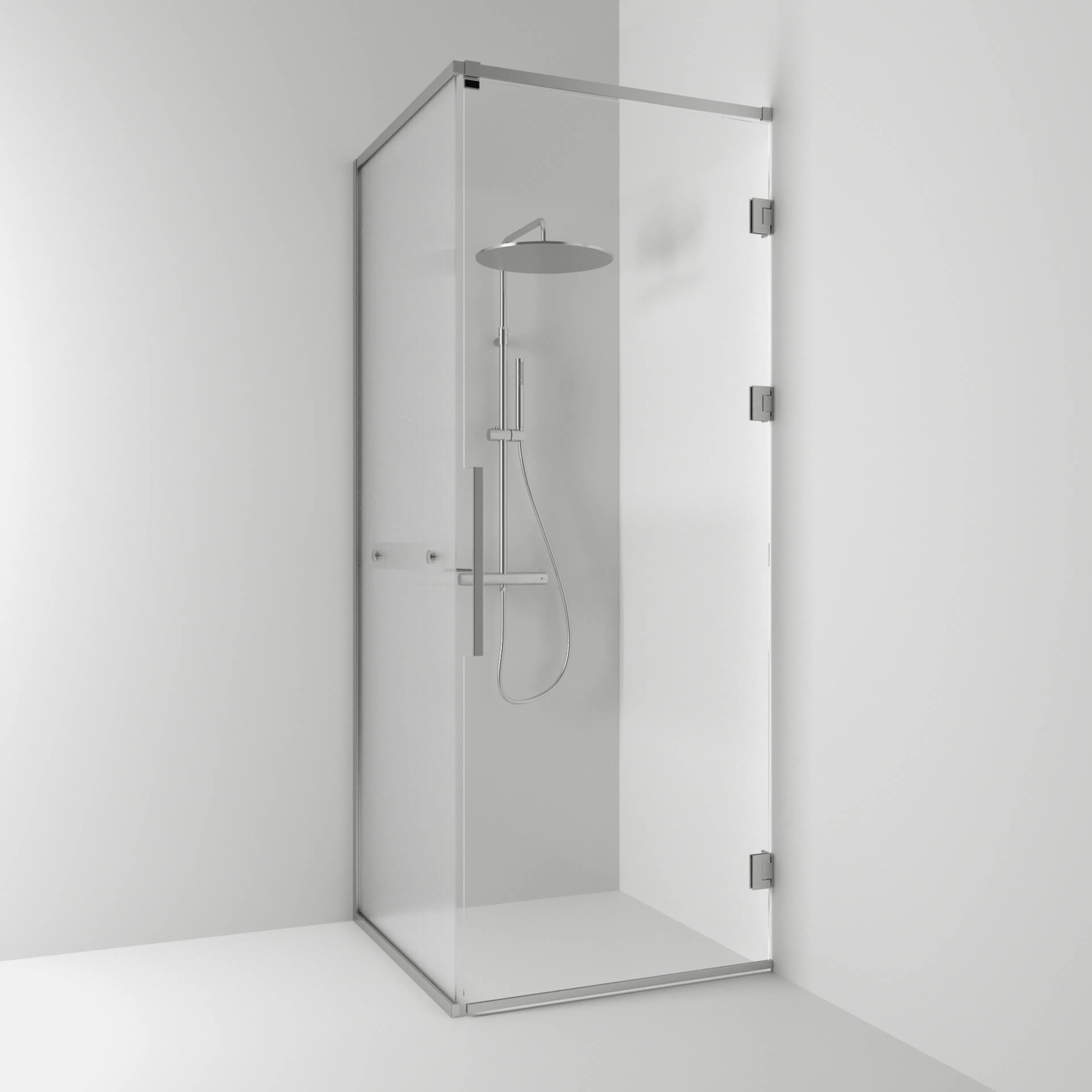 Langfoss Duschhörn består av en fast vägg och en duschdörr. Duschhörnet finns att välja med höjd 200 cm (201 cm ovankant med tillvalet gardinskena) eller höjd 230 cm (231 cm ovankant med tillvalet gardinskena). Härdat säkerhetsglas 6 mm. Väggprofil medger ej rördragning. Köp till rördragningsprofil, gardinskena och gardin som finns i flera färger.