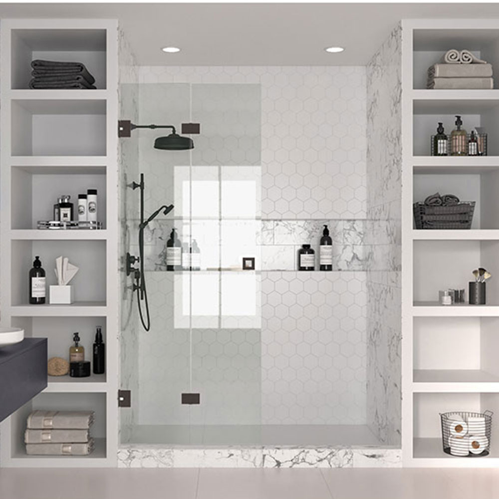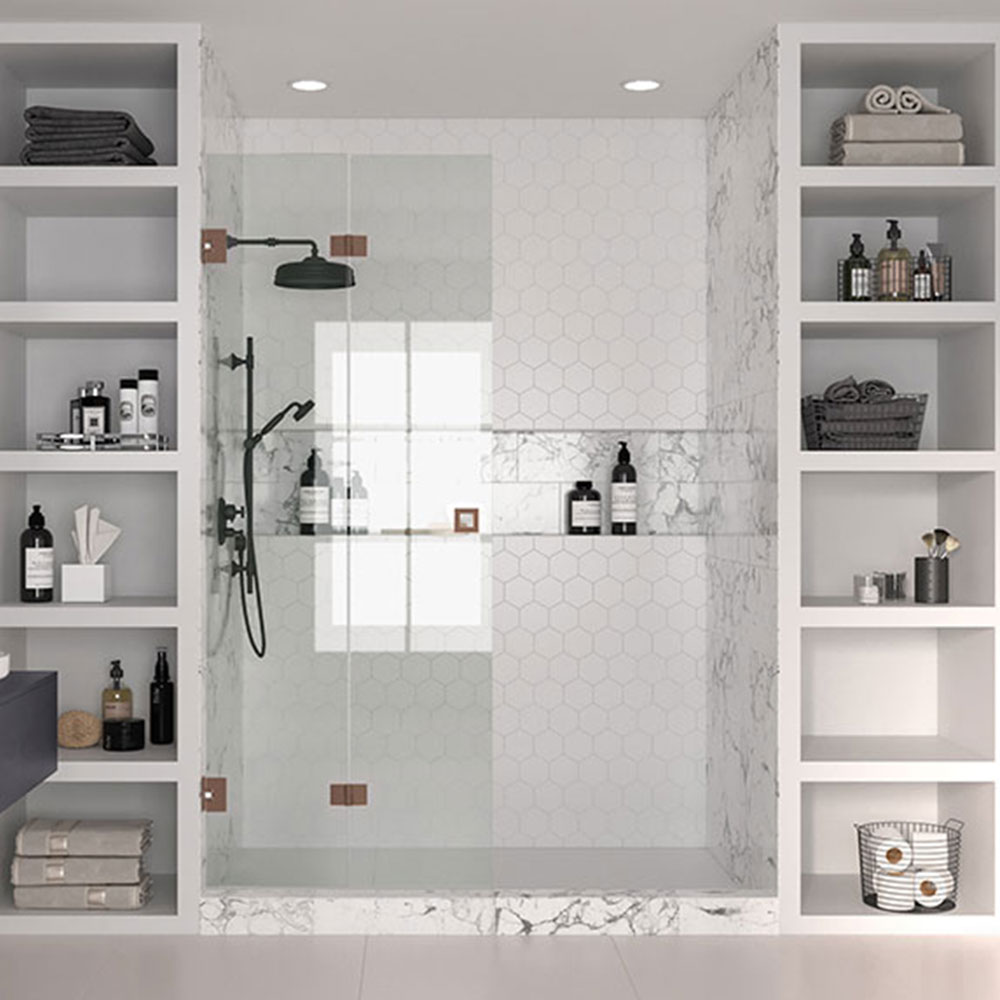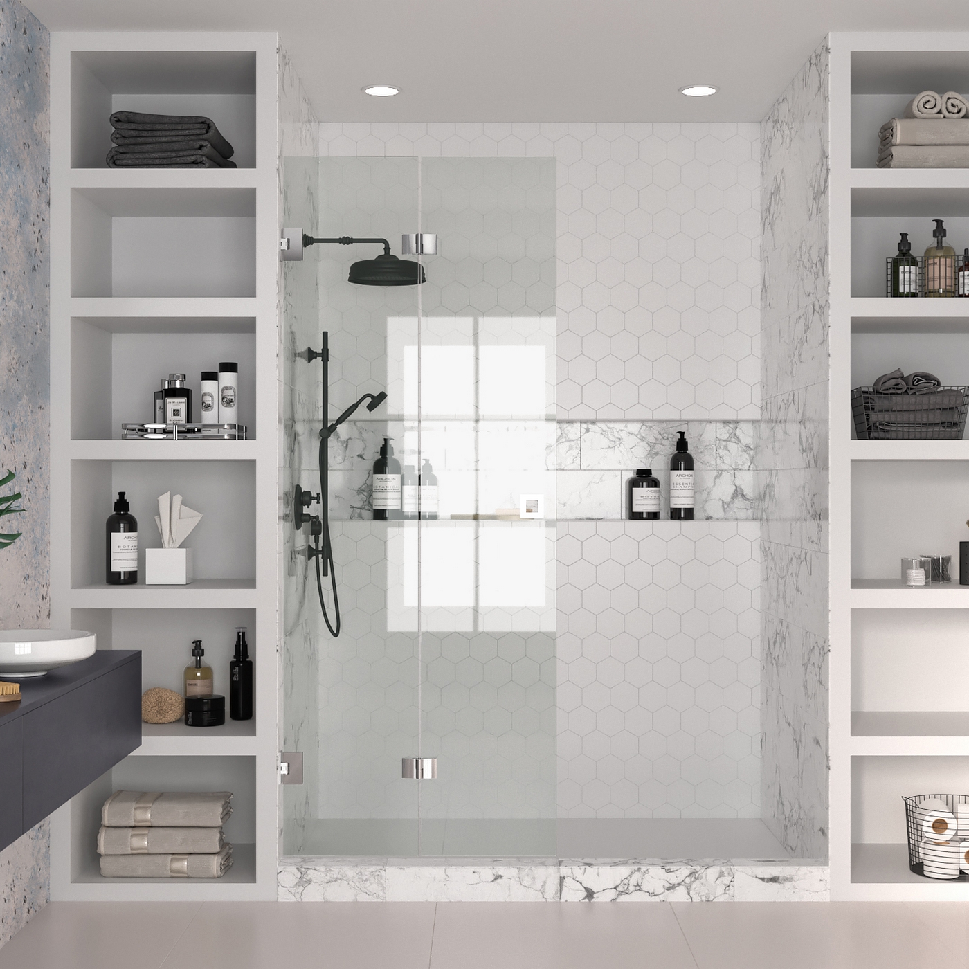 Duschdörr Hietakari Vetro 513 är en vikbar duschdörr som passar utmärkt när man önskar minimaliskt intryck till badrummet. Duschdörrens gångjärn fästs rakt vid väggen och monteringshöjden kan väljas fritt. När duschen inte används kan Duschdörren vändas och vikas ihop mot väggen. Duschdörren vänds 90 grader i bägge riktningarna och förses med justerbar centrering. Genom att montera produkten nära golvet och genom att fästa en släptätning (standard) under glaset kan vattenflödet begränsas.