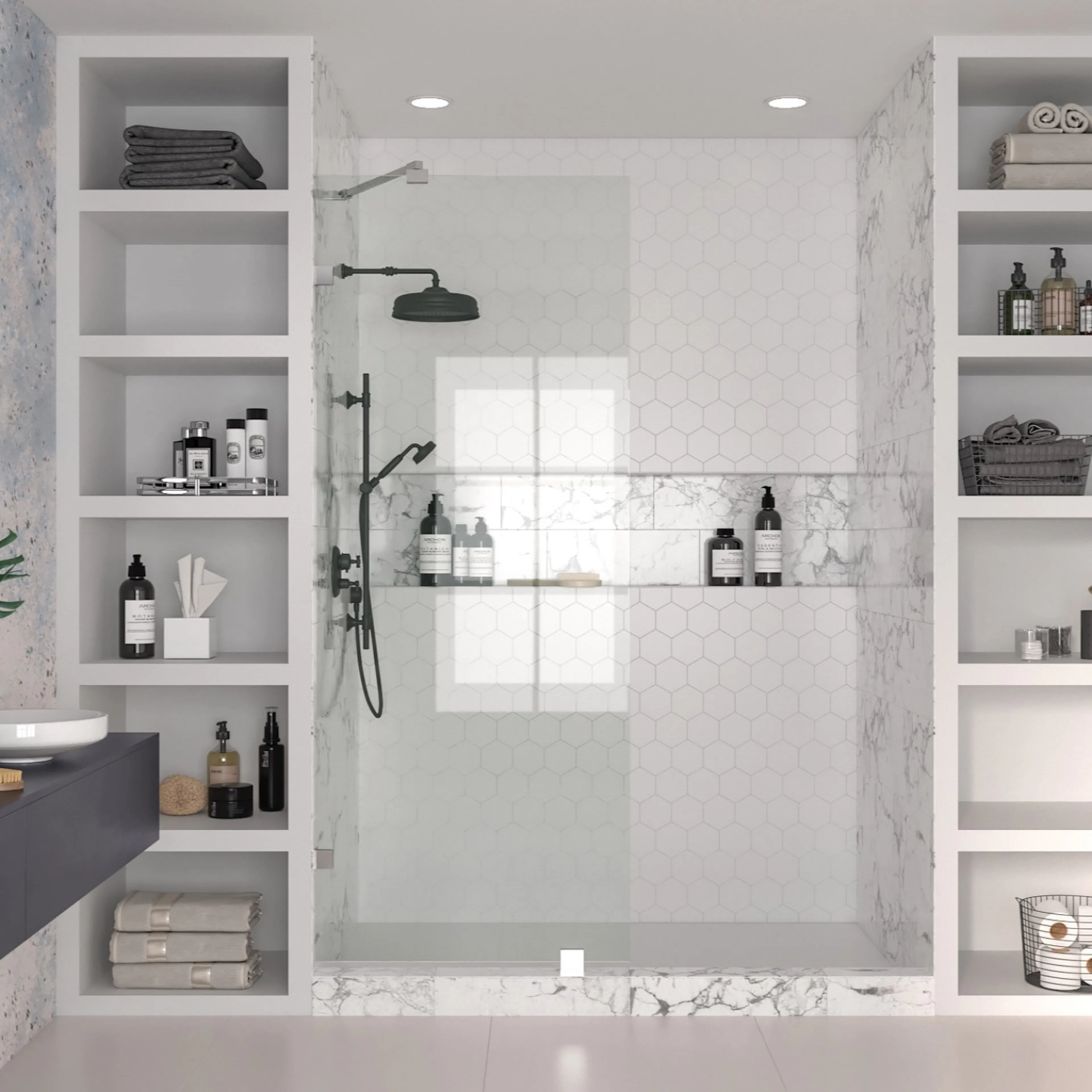 Duschvägg Hietakari Vetro 511 är en fast duschvägg som passar utmärkt när man önskar minimaliskt intryck till badrummet. Duschglasets golvbeslag stöder från golvet.