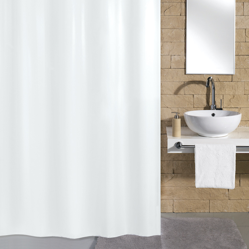 Duschdraperi Kito från Kleine Wolke är tillverkad av 100% polyester. Tyngdband är insydda i draperiets nedkant, som gör att draperiet håller sig på plats när du duschar.