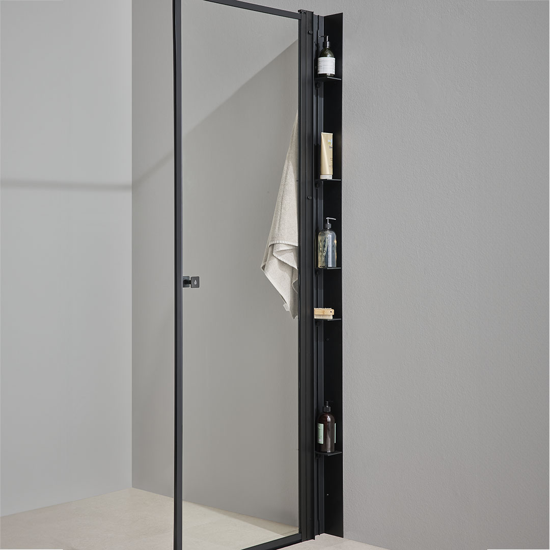 Bathlife Skyla är en duschhylla för alla dina schampo- och tvålflaskor. Med hyllan trollar du bort flaskorna på golvet och får en snyggare dusch. Skyla duschhylla har 5 hyllplan som du kan justera i höjdled. Duschhyllan monteras mellan badrummets vägg och duschväggen eller duschdörren.