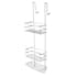 Duschhylla av rostfritt stål som hängs enkelt över duschvägg eller kabin. Den är perfekt när du vill ha rymlig förvaring och inte vill skruva i väggen. Tre hyllplan med två krokar på undre hyllan och två krokar som kan användas till handdukar på utsidan av duschväggen. 3 års rostskyddsgaranti.