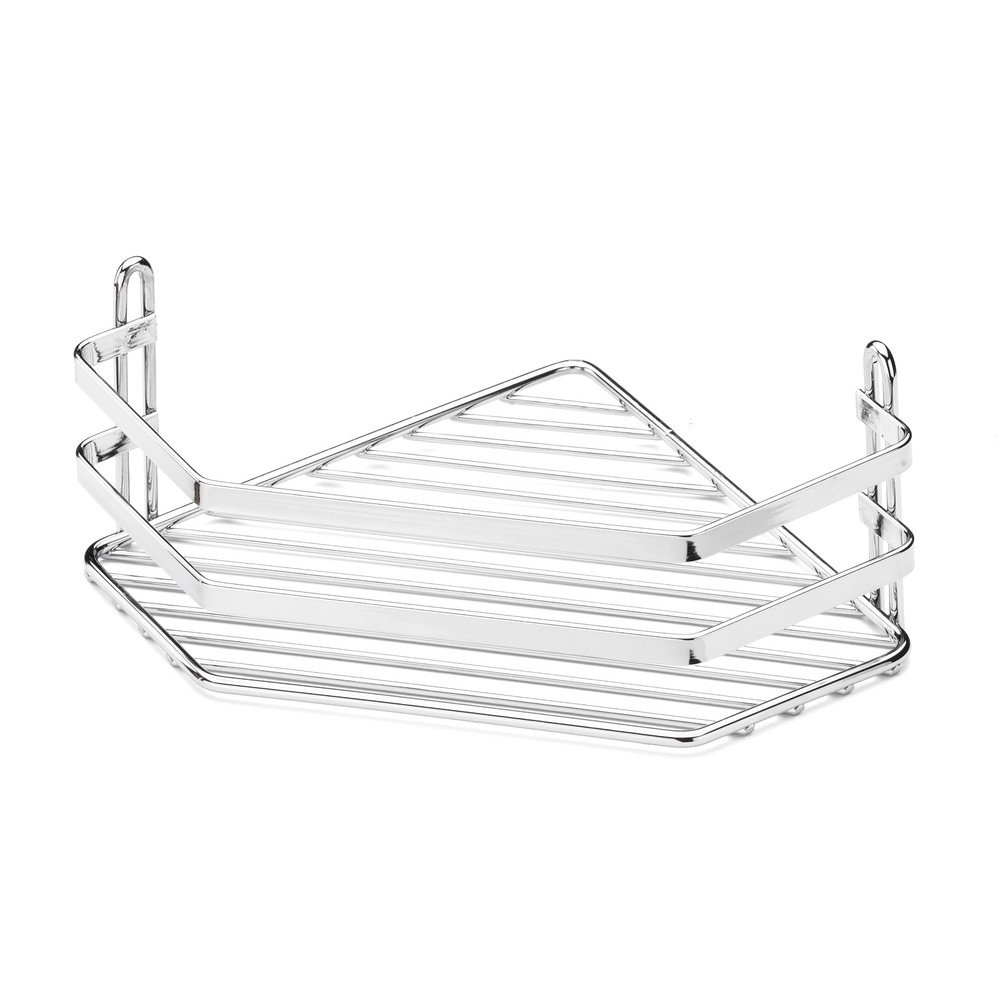 Duschkorg i rostfritt stål. För montering i hörn. Skruvfastsättning, skruv ingår ej. Med ett hyllplan för praktisk förvaring i duschutrymmet. 3 års rostskyddsgaranti.