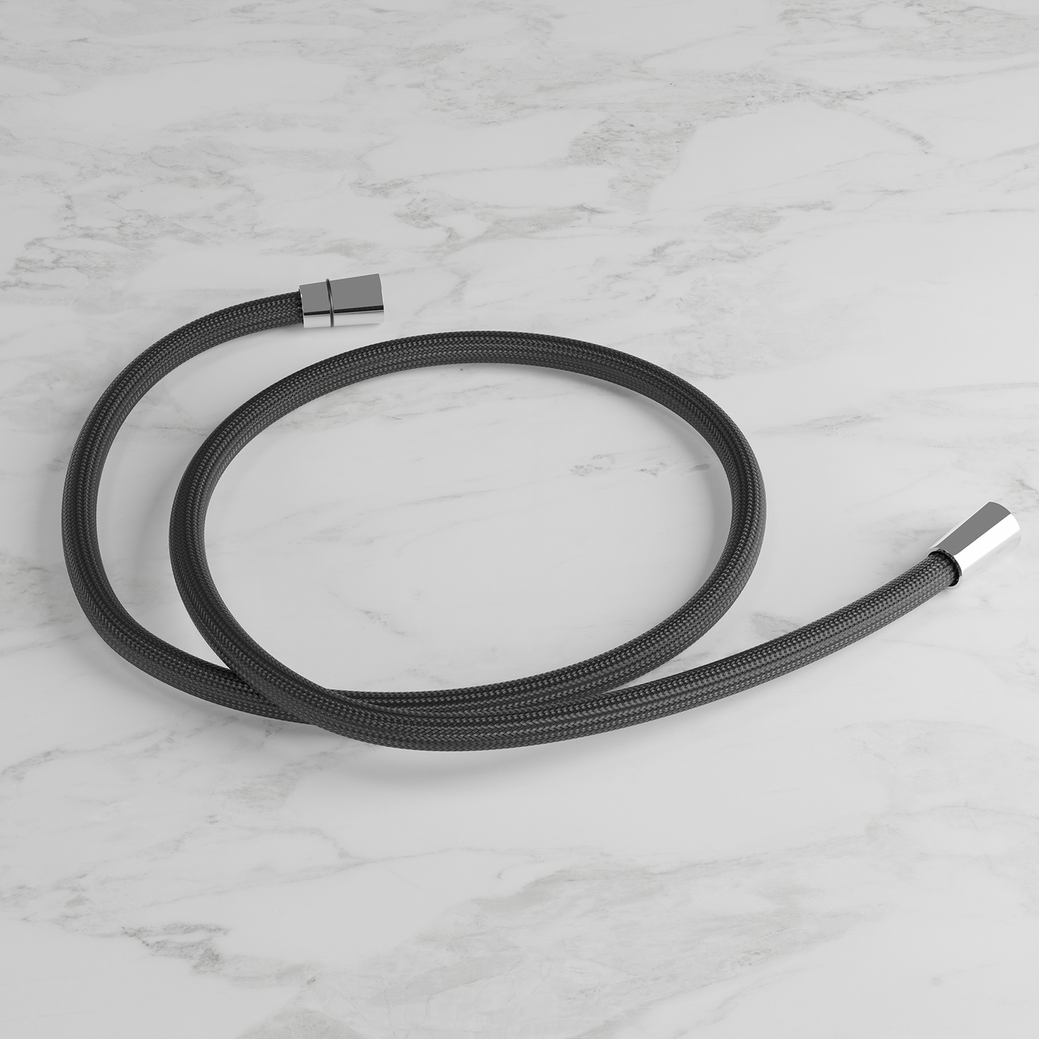 Slät duschslang från Scandtap i PVC-plast med anti-twist-funktion som förhindrar slangen från att virar ihop sig.