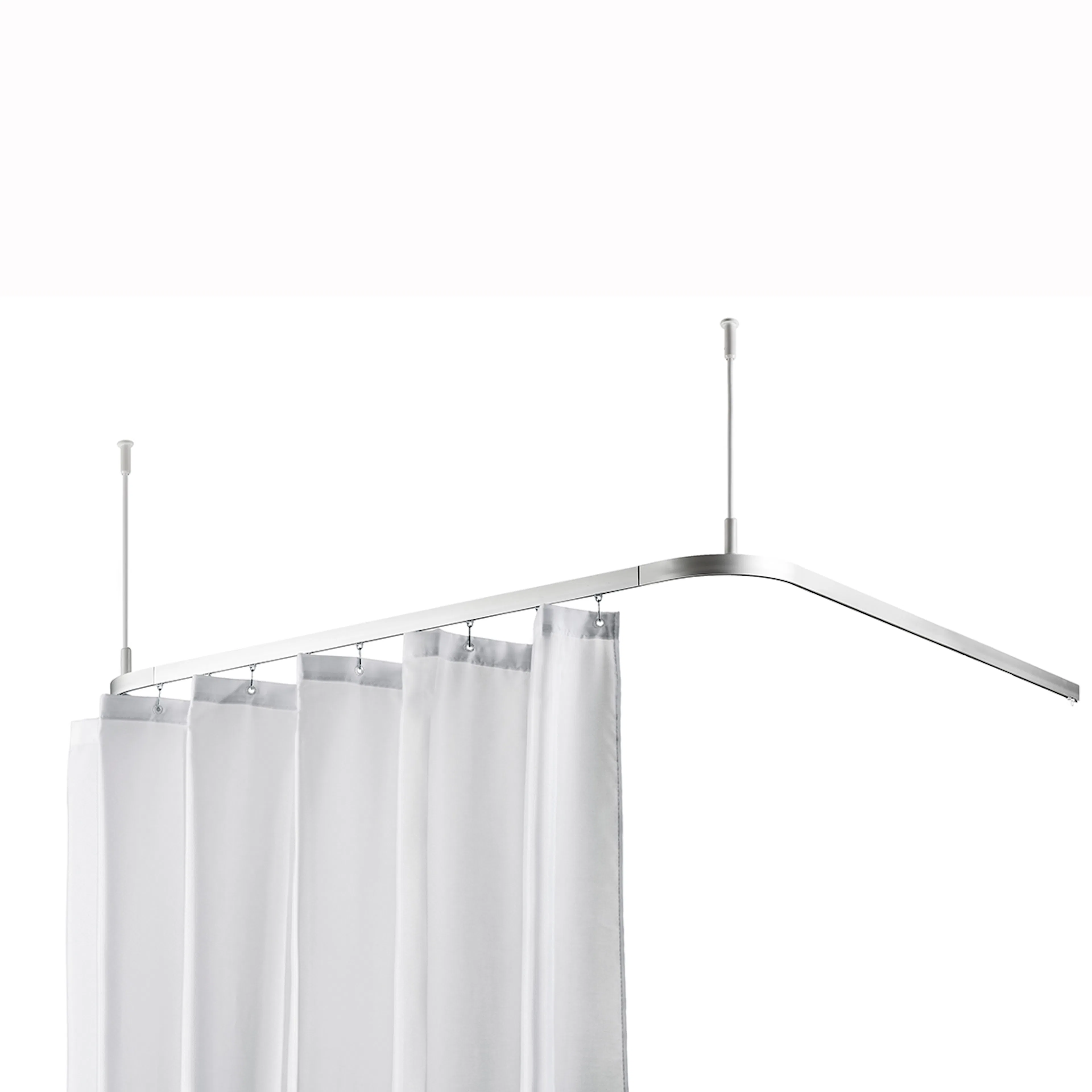 Flexibel och stabil duschskena i delar som kan monteras samman i olika varianter. Den kan även kapas vid behov. Innehåller 2 skenor med 90 graders böj, 2 raka skenor, 3 skarvdelar, 2 kapningsbara pendlar med pendelfästen, 2 ändfästen, glid samt krokar för duschdraperier.