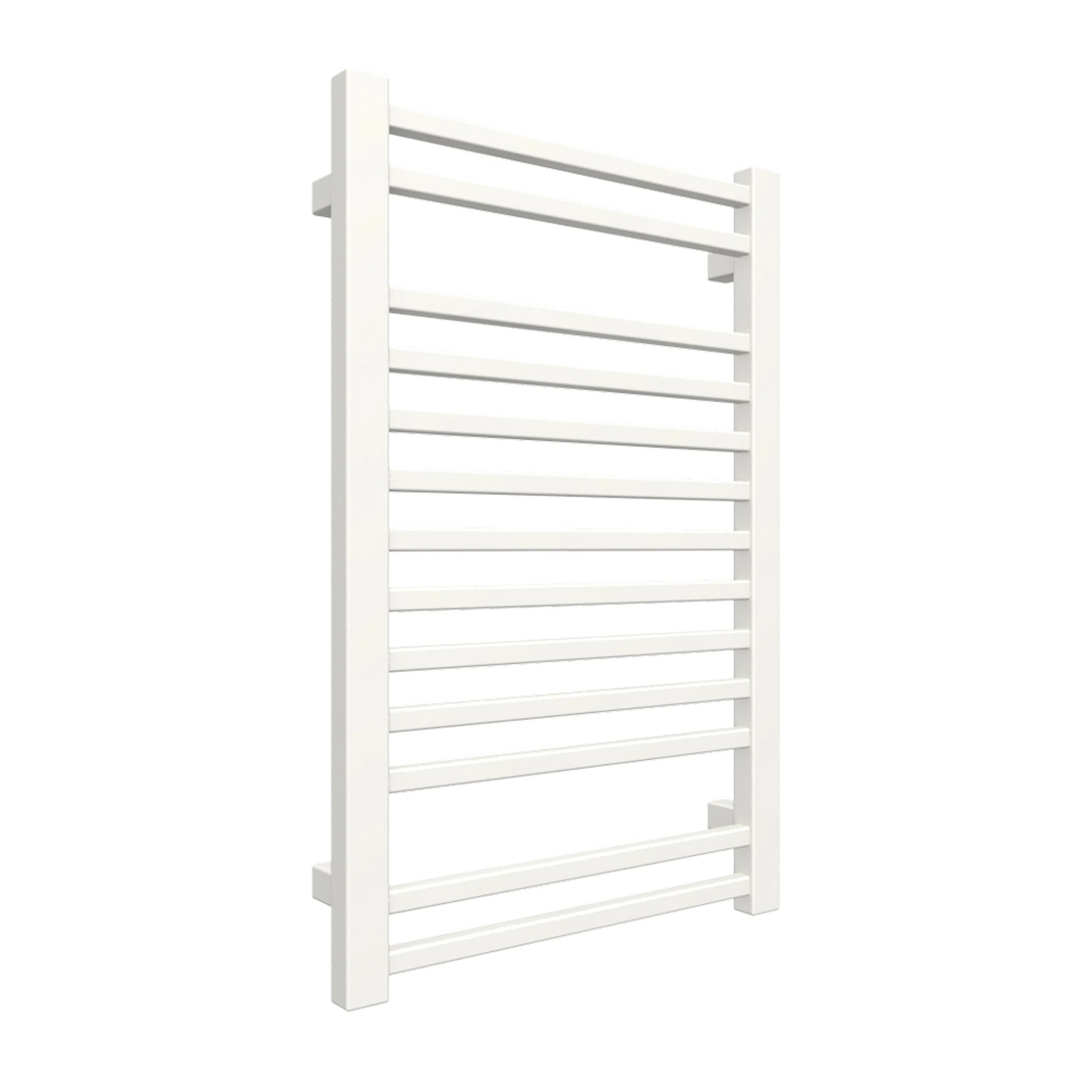 Denna handdukstork har eleganta kubiska former och en stilren känsla med de smala rören och handdukstorken ger ett luftigt intryck. Utformningen och rörens täta placering gör att värmen sprider sig på ett funktionellt sätt.
