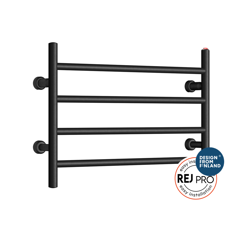 REJ Design tillverkar handdukstorkar i Finland av koppar – ett exklusivt material med överlägsen värmeledningsförmåga. Resultatet är snabb uppvärmning, jämn värmespridning och en tork som håller i många år. Den höga kvaliteten kombineras med ett smart installationssystem som minskar monteringstiden med upp till 50%. Med ett högre inköpspris på handdukstorken så blir totalkostnaden ofta lägre tack vare tidsbesparingen. Med REJ Design får du en stilren, energieffektiv och långsiktig lösning – tillverkad för nordiska krav.
