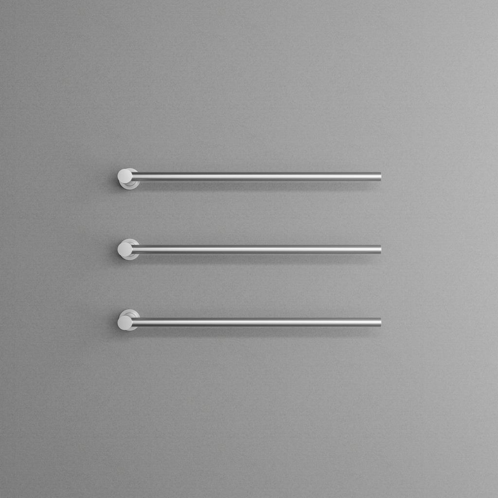 I horisontell modell med justerbara stänger som kan installeras i båda riktningarna för maximal funktionalitet. Idealisk för att hålla handdukar både torra och behagligt varma. Tillverkad i rostfritt stål