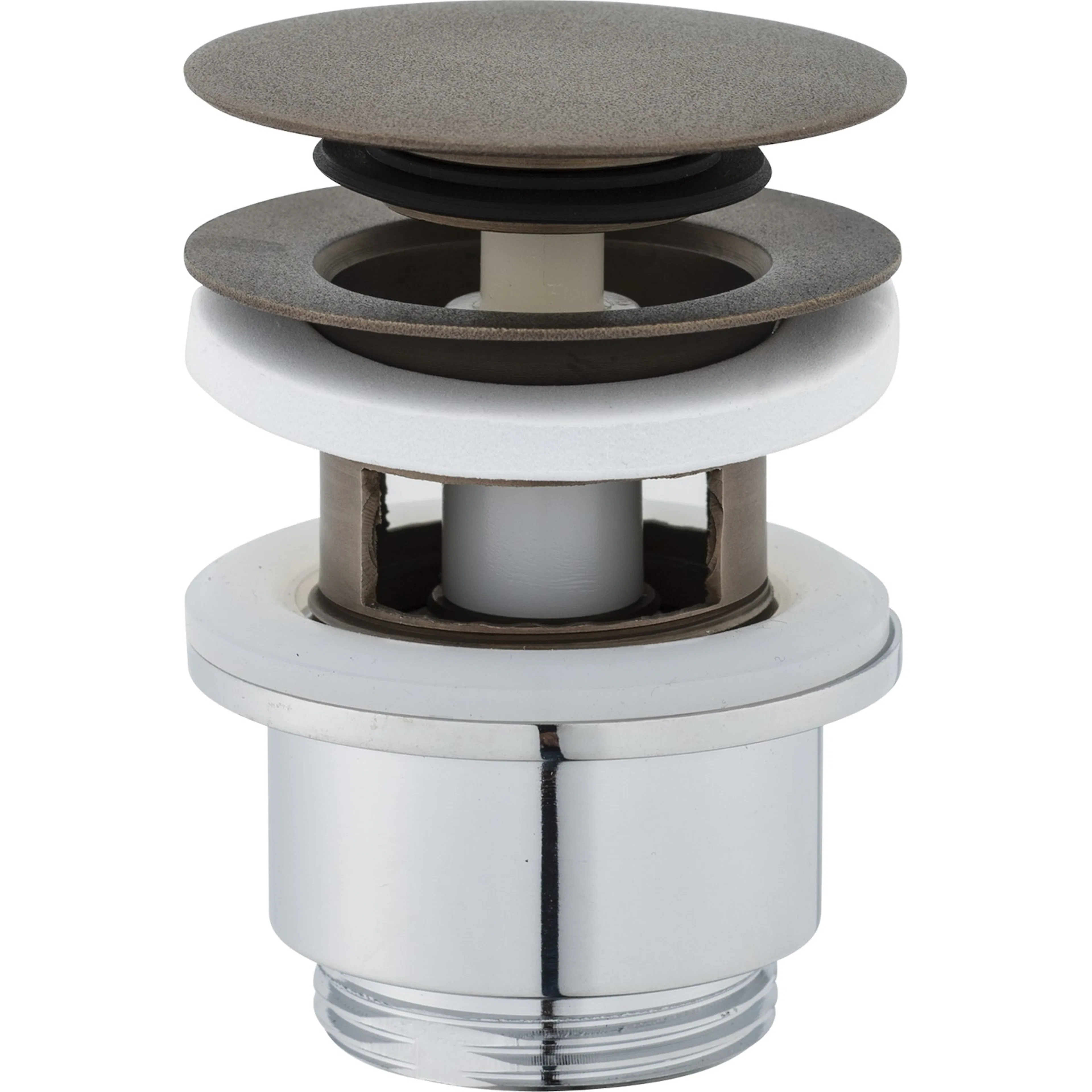 Push-down ventil. Med bräddavlopp. Byggdjup under bänk 39 mm.