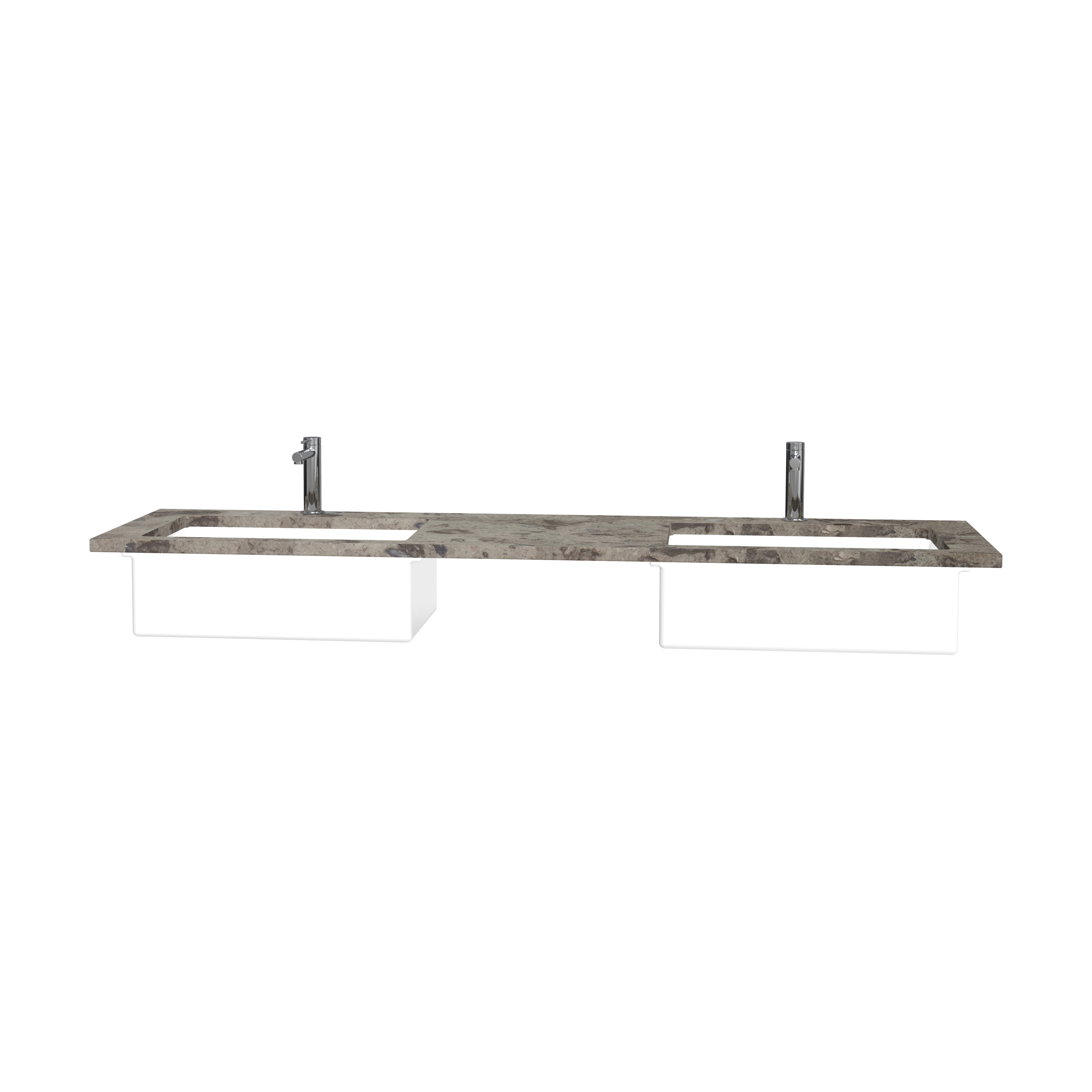 Bänkskiva Miller Badrum Sten City med 2 Underlimmade Tvättställ är en stilren stenbänkskiva för City 160 tvättställsskåp. Tvättställen har överfyllnadsskydd och bänkskivan levereras med förborrade centrerade blandarhål. Tvättställen har måtten B490 x D320 mm med ett djup på 160 mm.