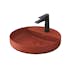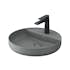 Tvättstället har ett centralt placerat hål för armaturen som ger en balanserad och minimalistisk estetik, medan den runda formen ger en mjuk och inbjudande känsla.