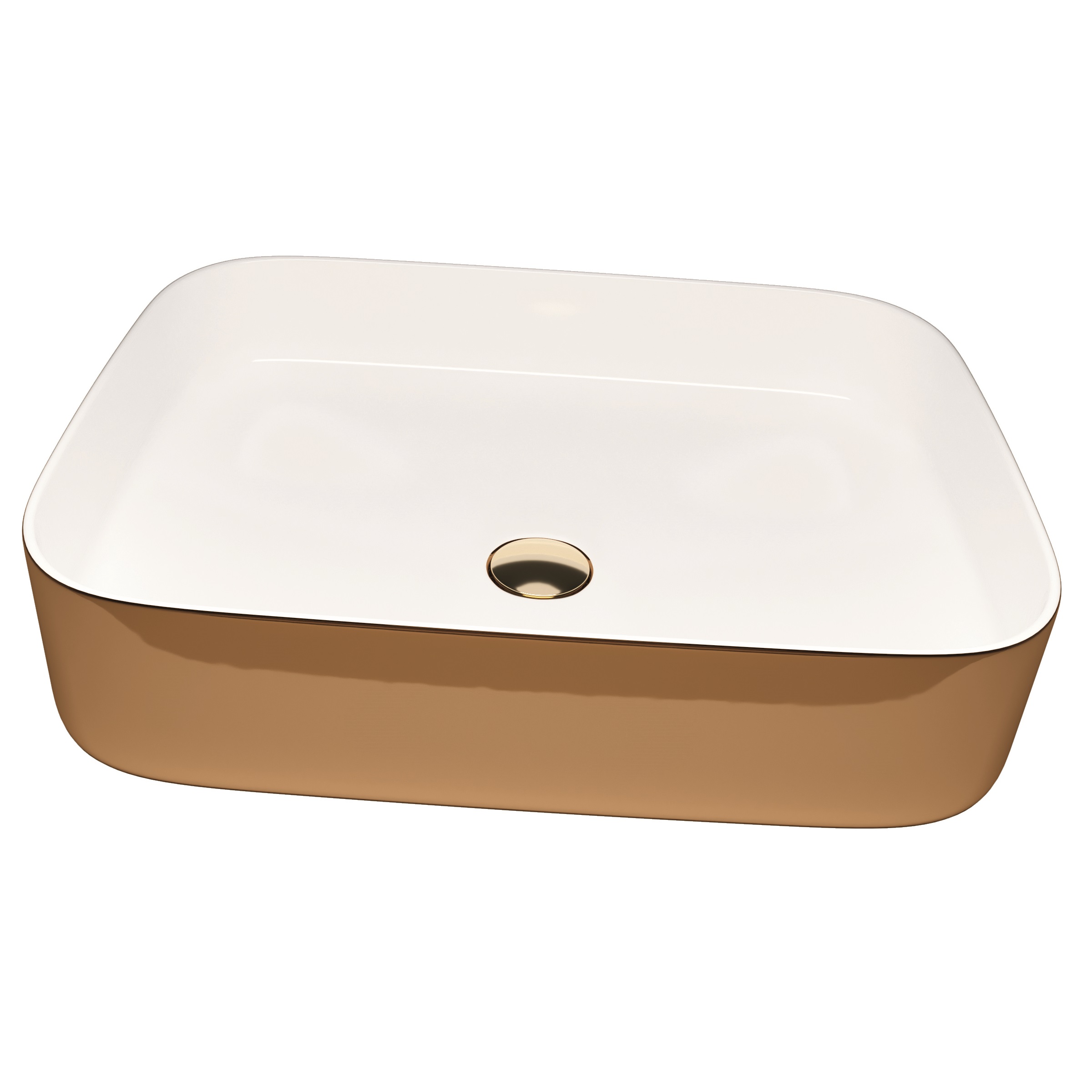 Tvättställ Badlyx Large 303 Bicolor är fristående och tillverkad i porslin och är metallapplicerad med PVD-teknologi (Physical Vapor Deposition). Då det är ett fristående tvättställ så behövs en högre tvättställsblandare, kolla måtten noggrant innan val av tvättställsblandare. Den stilrena och moderna designen gör att den passar in i de flesta badrum. Tvättstället finns att köpa i olika färger och kan därför enkelt matchas med övriga detaljer i badrummet.