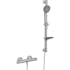Duschset Oras Aurelia är ett duschpaket innehållande termostatblandare för dusch, anslutning 150 cc med M26 x 1,5 utv.g. samt duschset. Blandaren har användarvänliga vred med temperaturbegränsningsknapp 38°, samt flödeskontroll. Blandaren är utrustad med backventiler och smutsfilter. Duschset med duschslang 1750 mm, duschstång, hållare för handdusch, flexibla/fasta väggfästen och handdusch med 3 strållägen för en komfortabel duschupplevelse. Handduschen är enkel att rengöra tack vare sina antikalk-munstycken.