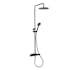 Komplett takdusch från Hafa med tunt elegant duschhuvud i rostfritt stål. Temostatblandare av mässing med skållningsspärr och HeatProtection som ger ett värmeskyddande hölje. Duschstång med teleskopsfunktion där du anpassar lätt höjden själv mellan 780-1490 mm, samt ett justerbart väggfäste i djupled.