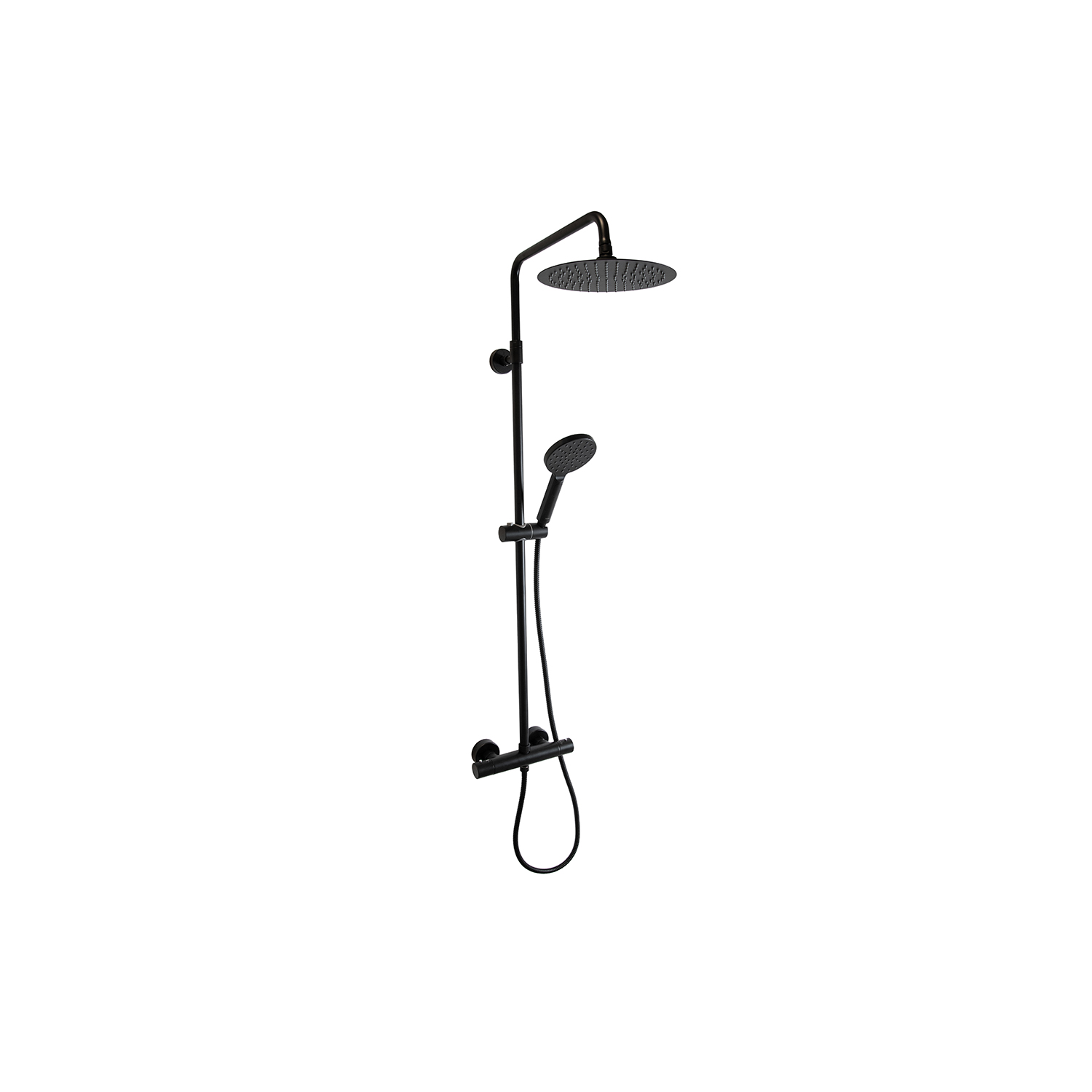 Takduschset LH Turano är ett stilrent duschset med en blandare (cc-mått 150 mm), en rund takdusch (Ø250 mm), en elegant handdusch samt duschslang och duschstång. En justermån på 550 mm gör det möjligt att passa in duschen för olika takhöjder. Med detta moderna duschset kan du njuta av en avslappnande och uppfriskande dusch. Finns i flera olika ytbehandlingar.