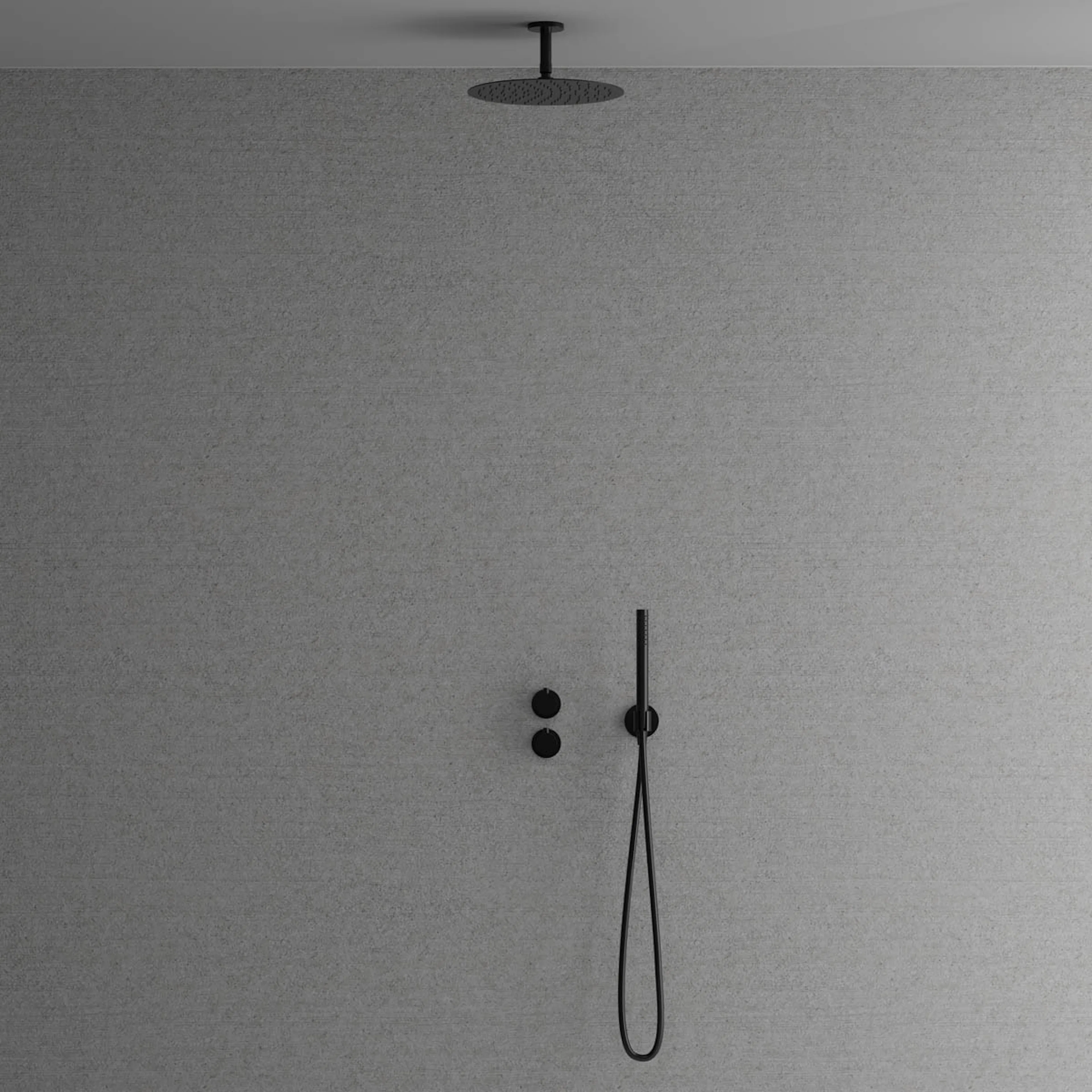 Dold montering bakom vägg ger badrummet ett minimalistiskt och harmoniskt intryck. Inkluderar en tunn takmonterad taksil med generös omkrets samt en cylindrisk handdusch som avger ett mjukt behagligt vattenflöde med bred spridning. Tidlös design som samspelar med ett skandinaviskt formspråk.