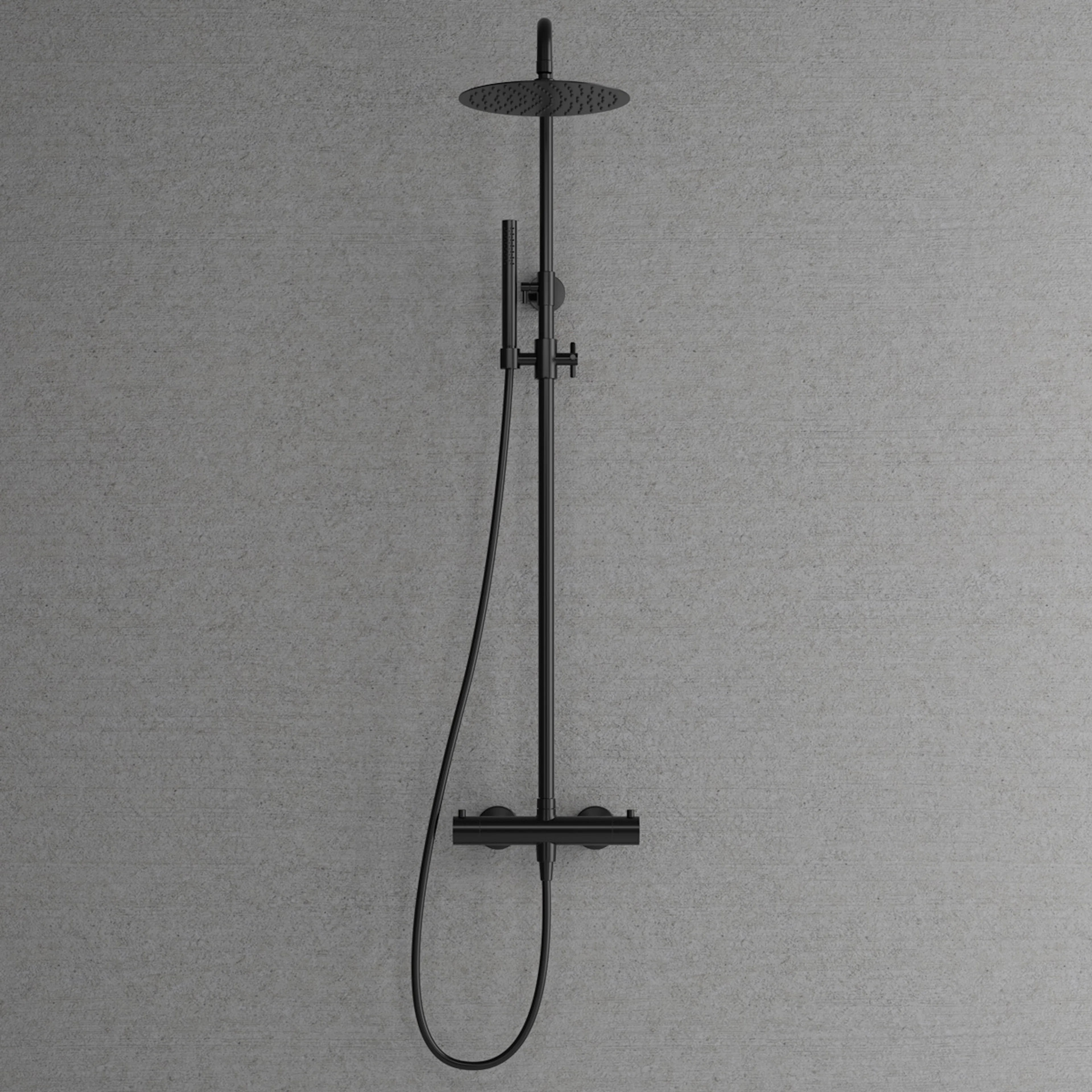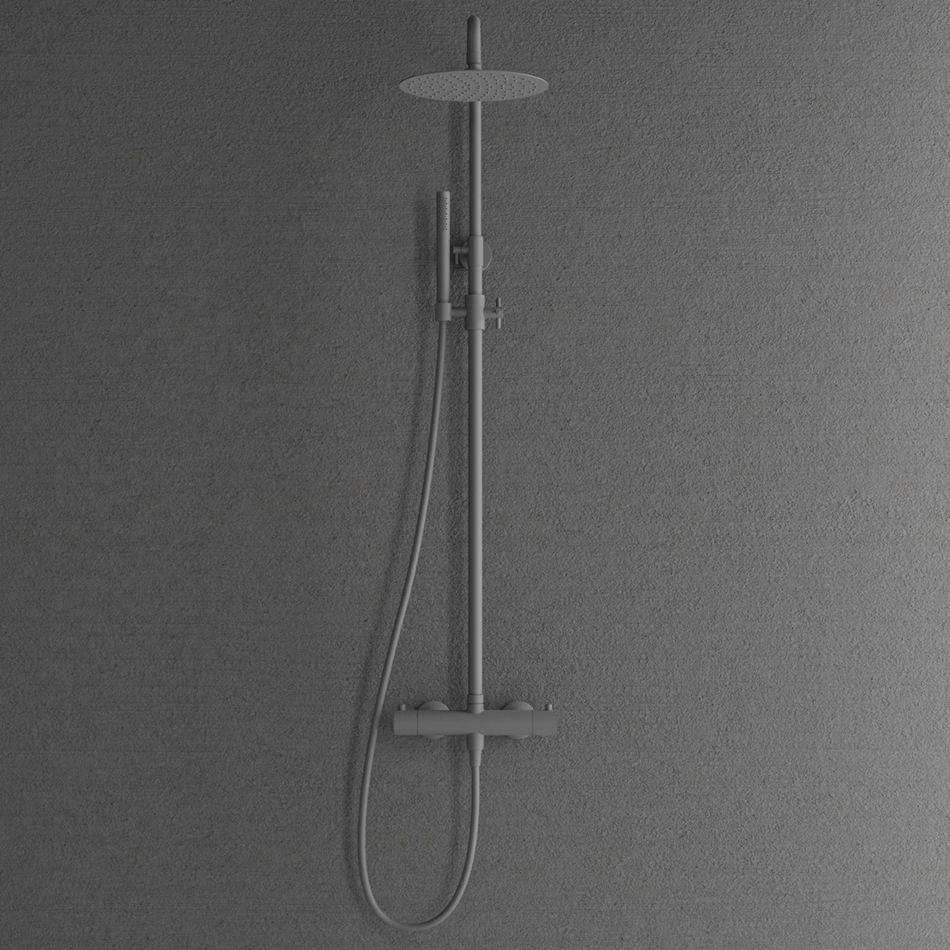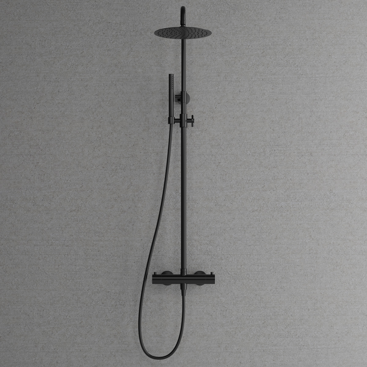 Takduschset Scandtap Steel Pleasure 2 är ett stilrent duschset med minimalistisk design. Detta duschset levereras med en termostatblandare (150 cc) med integrerad omkastare, en stor och tunn takdusch (Ø250 mm), en handdusch, en duschslang (1,5 m) med anti-twistfunktion samt en justerbar duschstång (970-1360 mm) med ett justerbart övre väggfäste (70-129 mm från väggen).