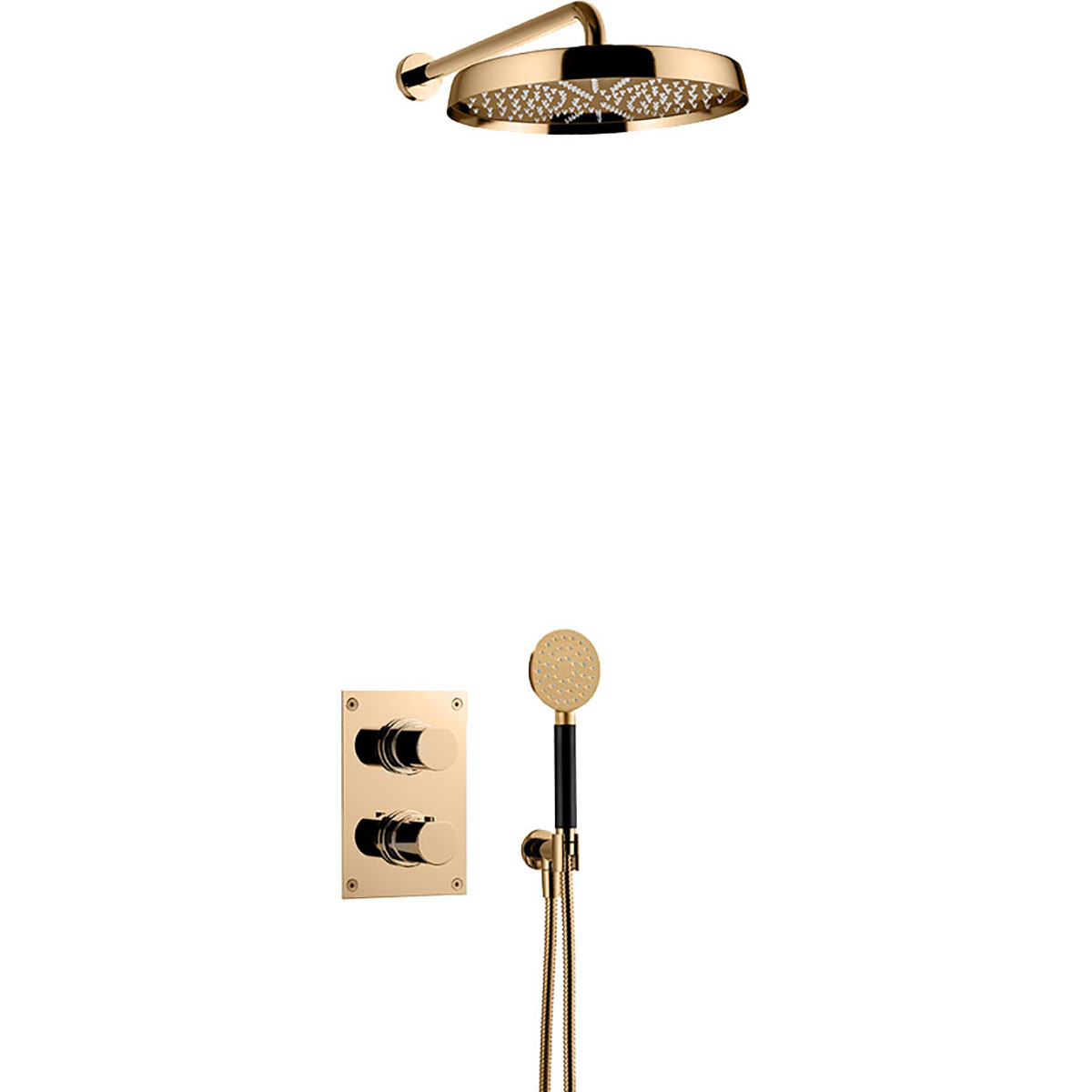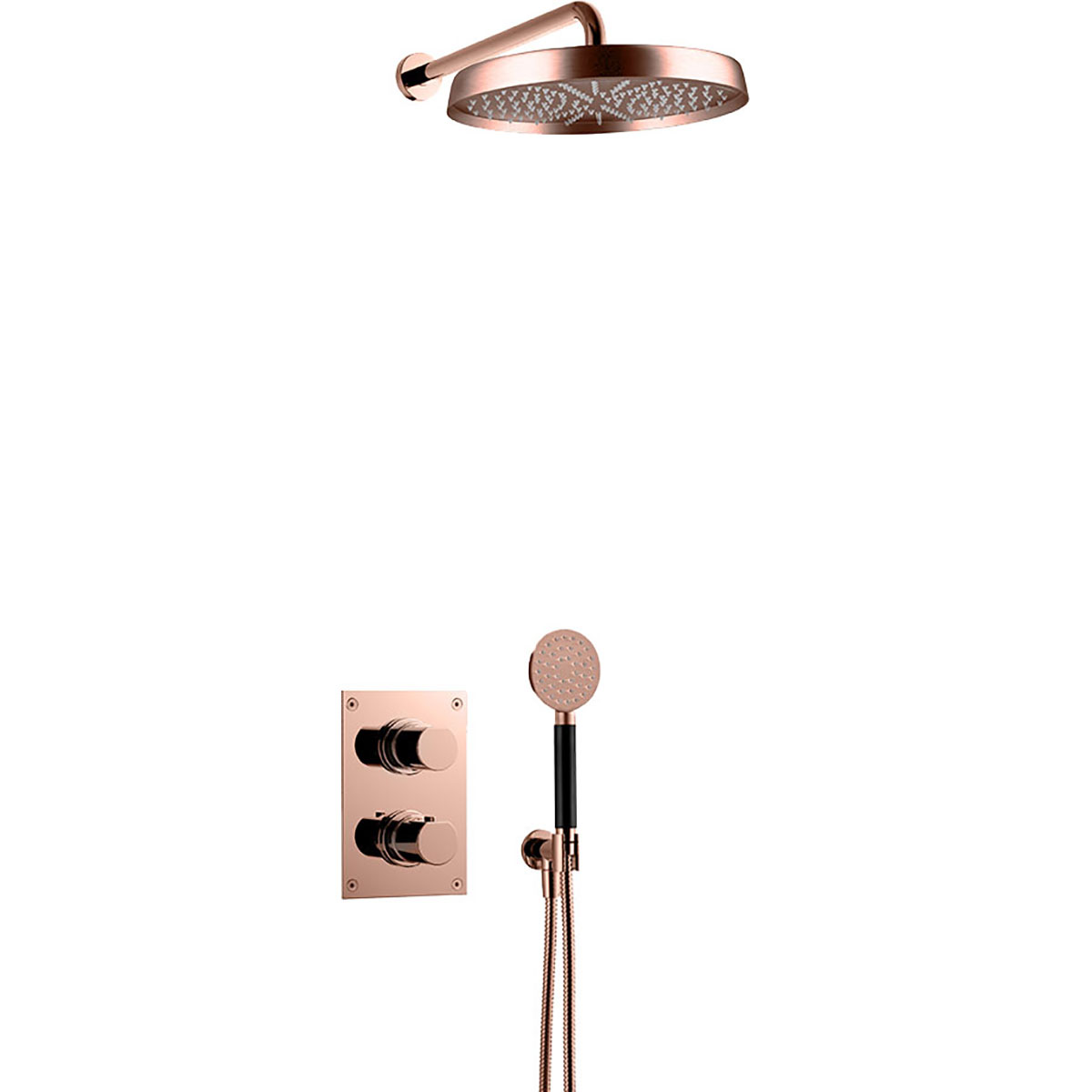 Takduschpaket ARM7268 ED2 för inbyggnad med tryckbalanserad termostat, handdusch, taksil, duscharm och inbyggnadsbox (med färdigmonterad blandare). Anslutningsrör i vägg och monteringsskenor ingår ej.